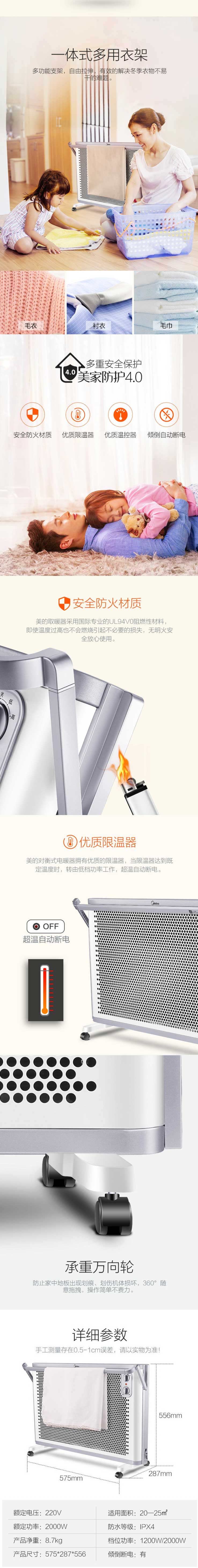 商品名称:美的 NDK20-18AW 取暖器 755*251*556MM 乳白色