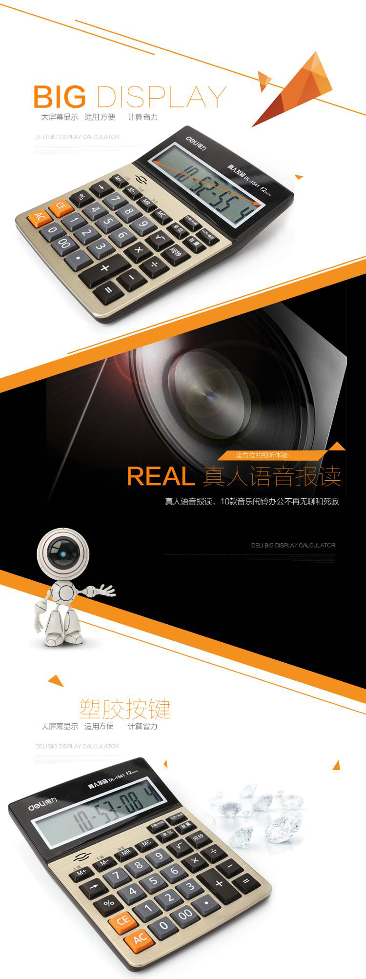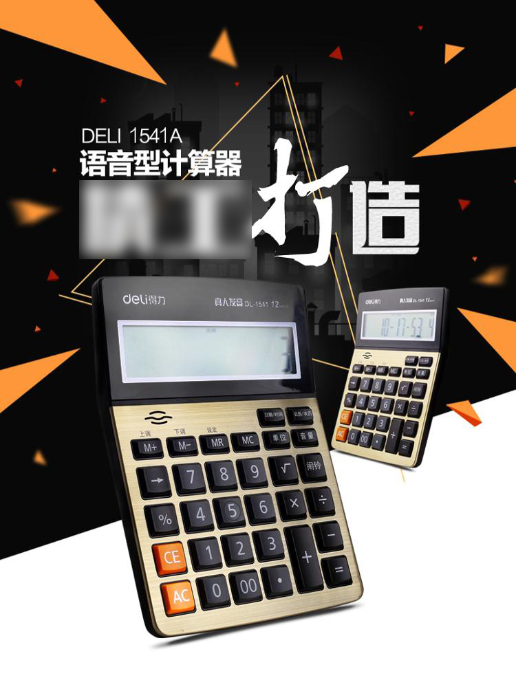 商品名称:得力(deli)1541A 大屏幕12位语音型计算器 金色 185*135*39mm
