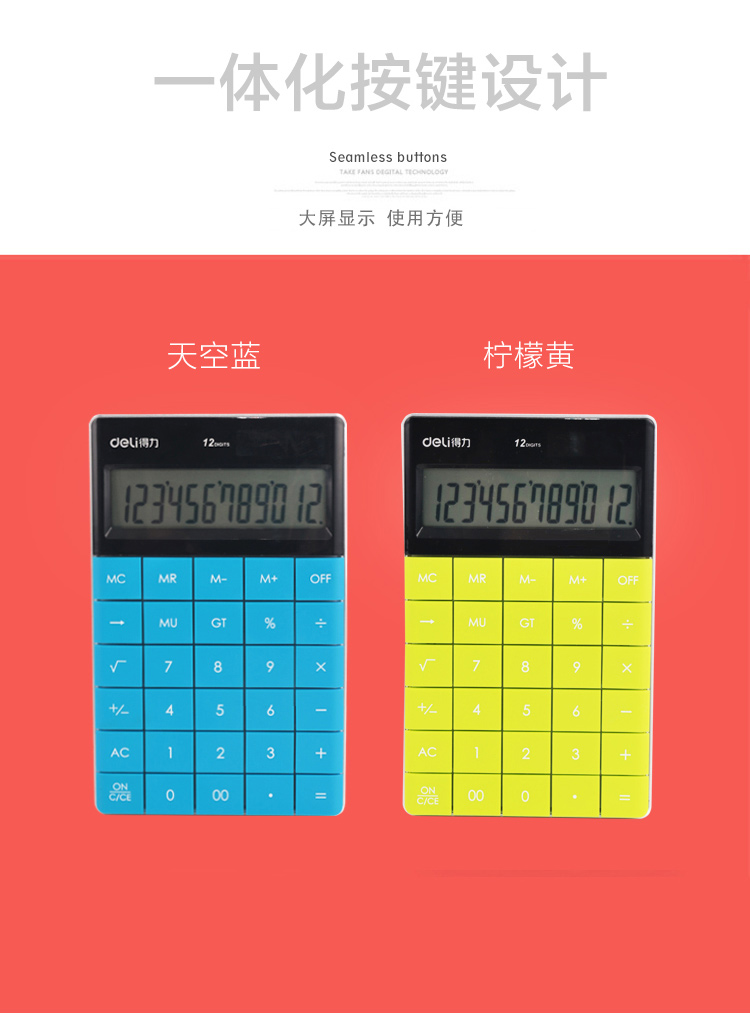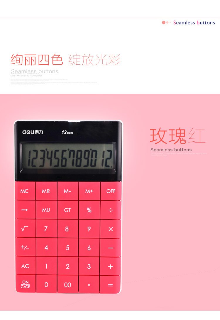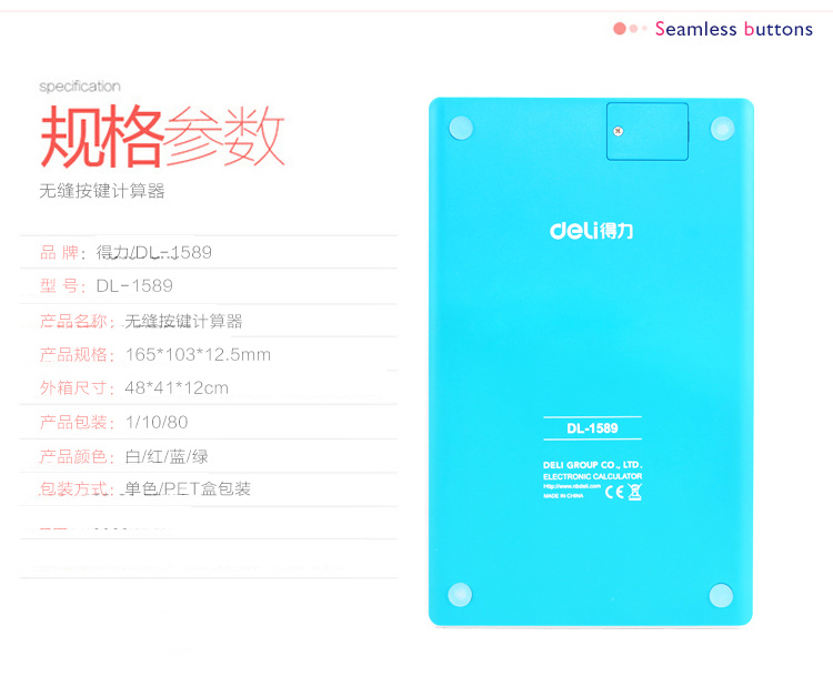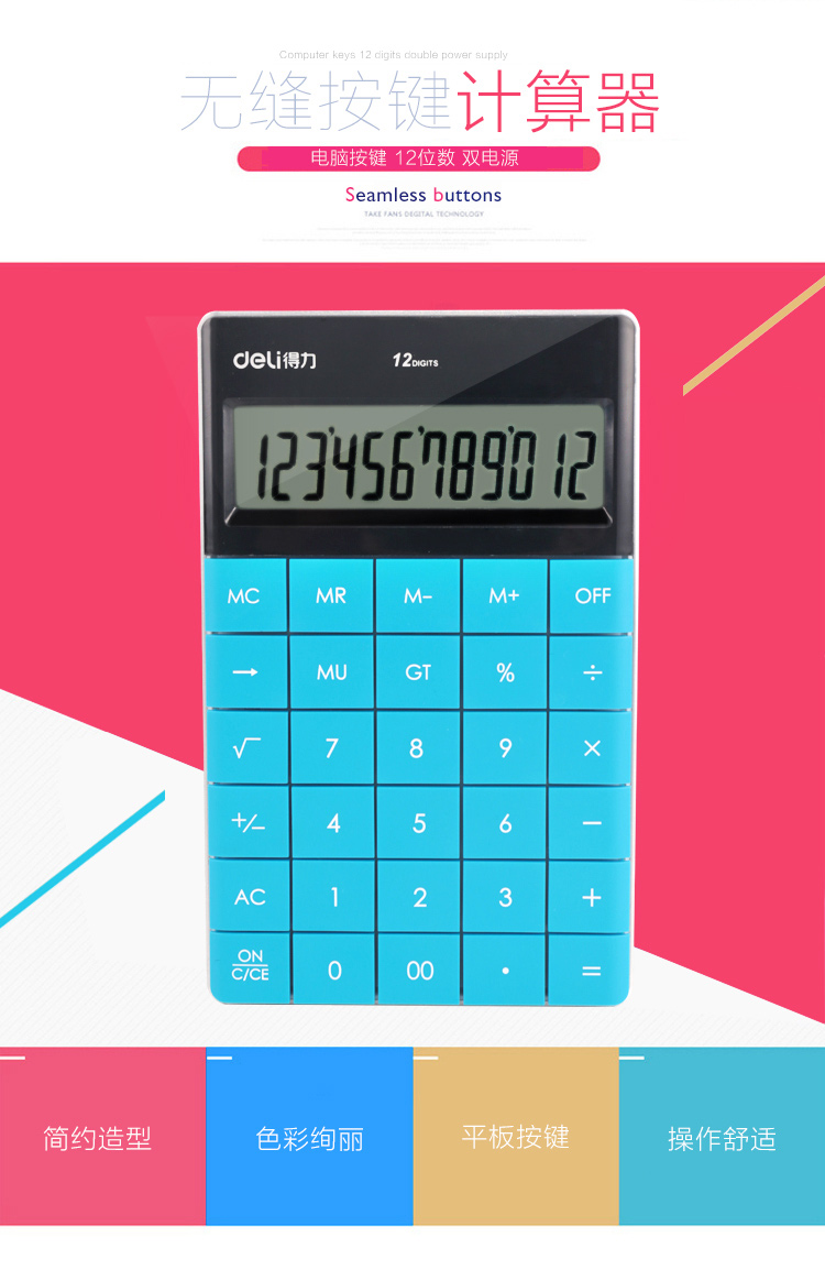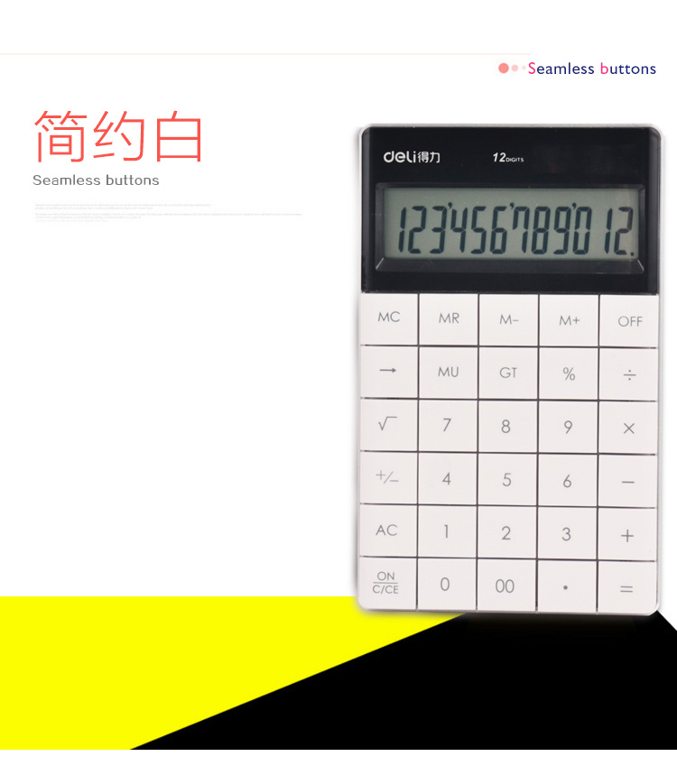 商品名称:得力(deli)1589 无缝按键平板式计算器 白