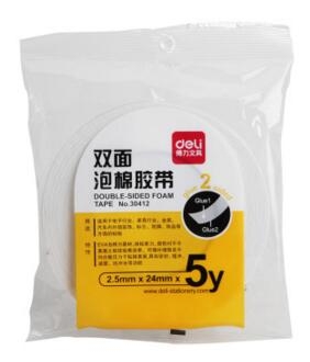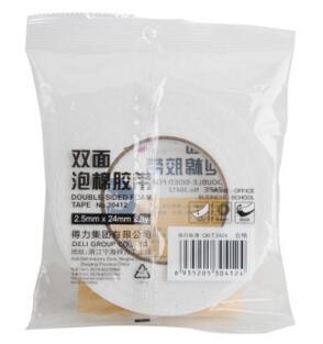 商品名称:得力(deli)30412 强粘力泡棉双面胶带/海绵胶带/泡沫胶带 24mm*5Y