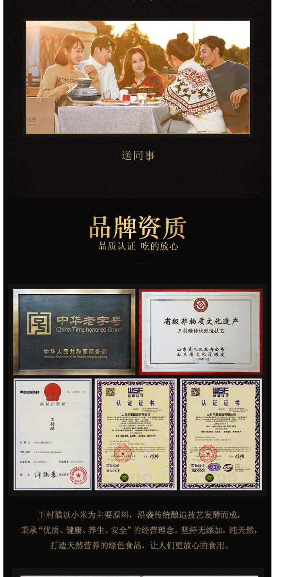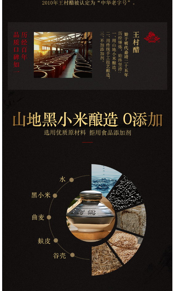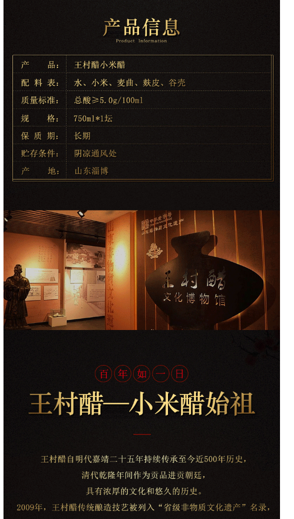 - 商品名称:王村醋(WANG CUN CU)小米醋750ml黑坛山东特产零添加炒菜凉拌饺子佐餐调味