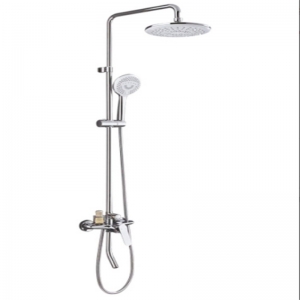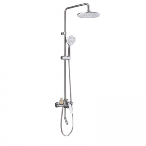 壁挂式圆形花洒,三出水,单把双控冷热水,花洒支架带升降