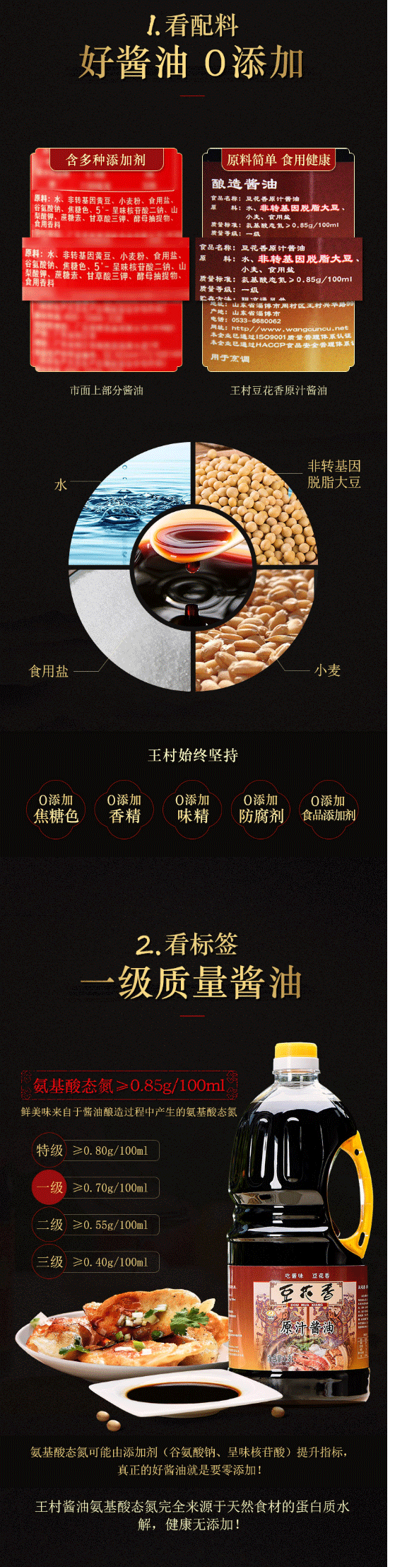 - 商品名称:王村醋(WANG CUN CU)豆花香酱油1.8L山东特产酿造生抽家用炒菜红烧佐餐凉拌上色调料