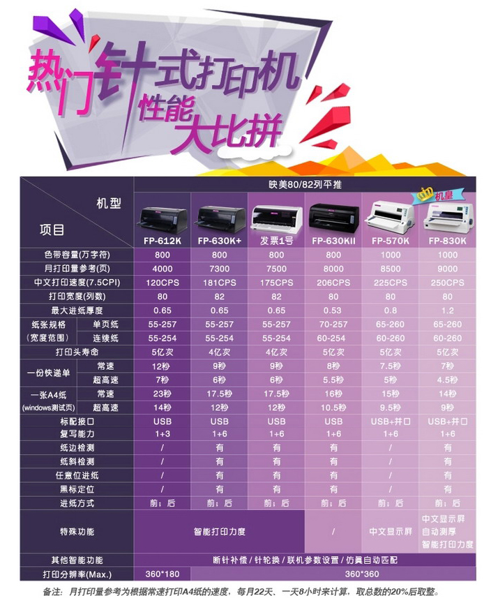 商品名称:映美(Jolimark)FP-830K 高负荷票据快递单存折卡片发票