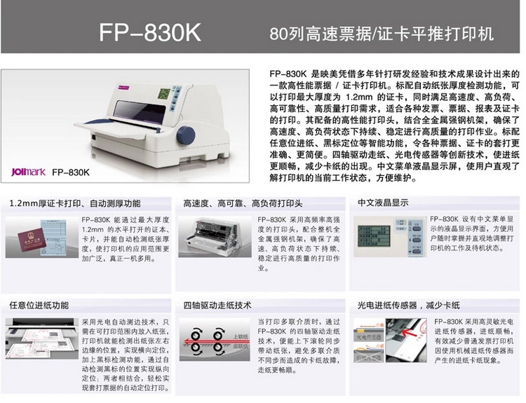 映美(Jolimark)FP-830K 高负荷票据快递单存折卡片发票