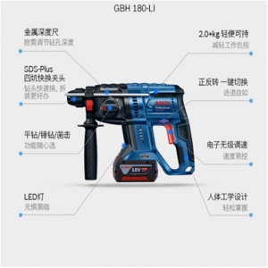 商品名称:BOSCH 博世GBH 180-Li 多功能锂电无刷充电式电锤/电钻/冲击钻(18V双电版)