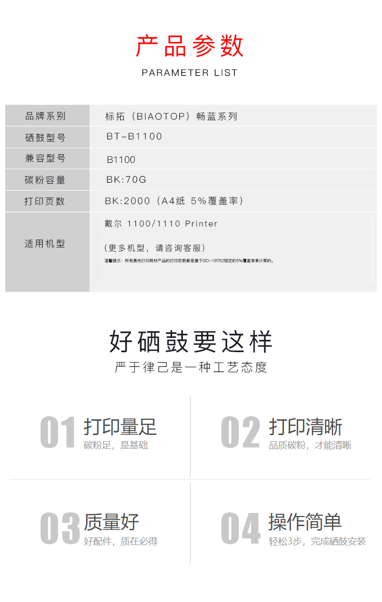 - 商品名称:标拓 B1100易加粉硒鼓适用戴尔 1100/1110 Printer打印机 畅蓝系列