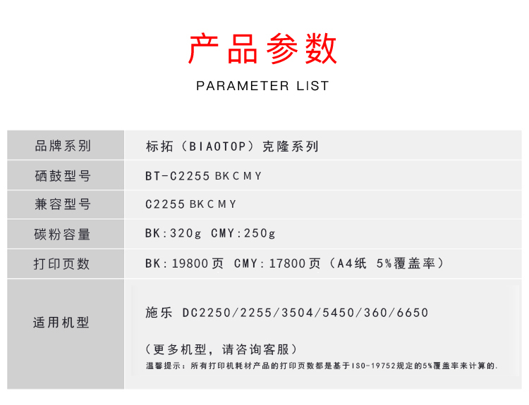 - 适用机型:施乐DocuPrint C2250/C2255/C3360/C3450/C6650