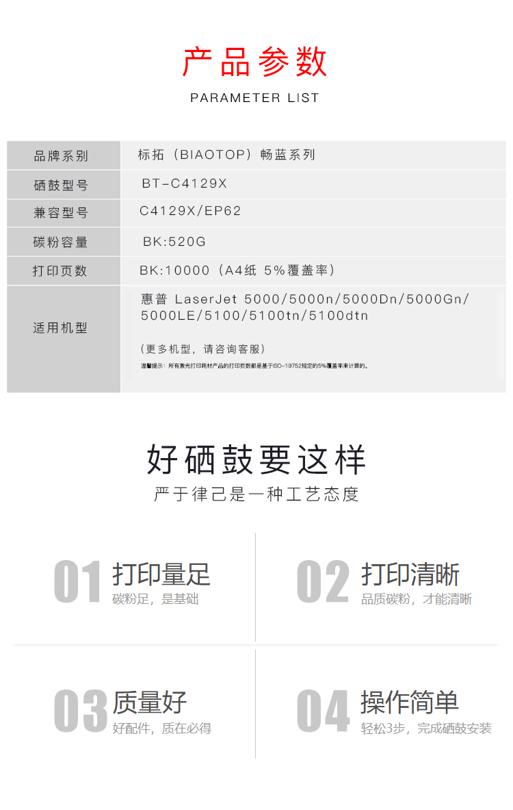 - 商品名称:标拓 C4129X硒鼓适用惠普5000/5000n/5000Dn/5000Gn打印机 畅蓝系列