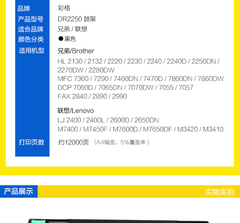 - 适用机型:HL-2132;2230D;2240;2240D;2250DN;2270DW FAX-2890;2990 DCP-7057;7060D; 7065DN;7070DW MFC-7290;7360;7460DN;7470D;7860DN联想LJ2400;LJ2400L;LJ2600D;LJ2650DN;M7400;M7450F;M7600D;M7650DF;M7650DNF