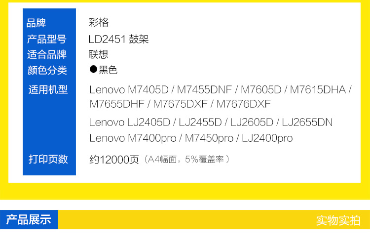 - 适用机型:Lenovo;LJ2405D;LJ2455D;LJ2605D;LJ2655DN;M7605D