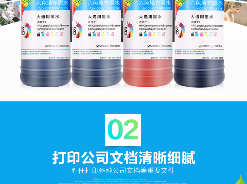 适用机型:佳能;惠普;爱普生;联想等喷墨打印机 连供填充墨盒