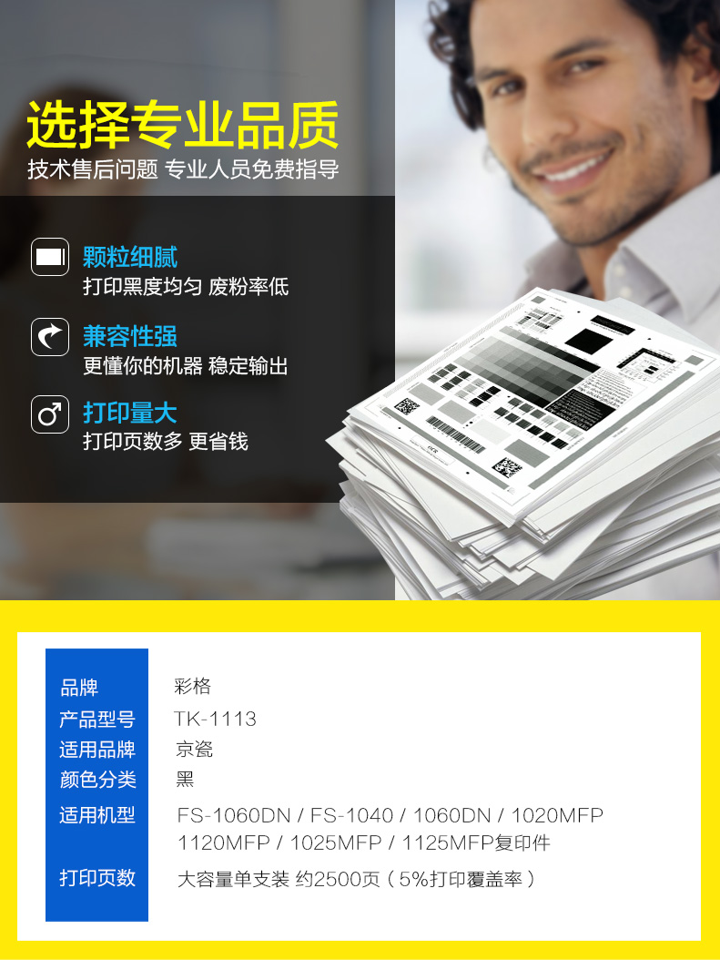 - 商品名称:彩格 适用京瓷FS1025MFP碳粉1040 1060DN 1020墨粉 TK1113 1120 1123 1125 1128墨粉盒