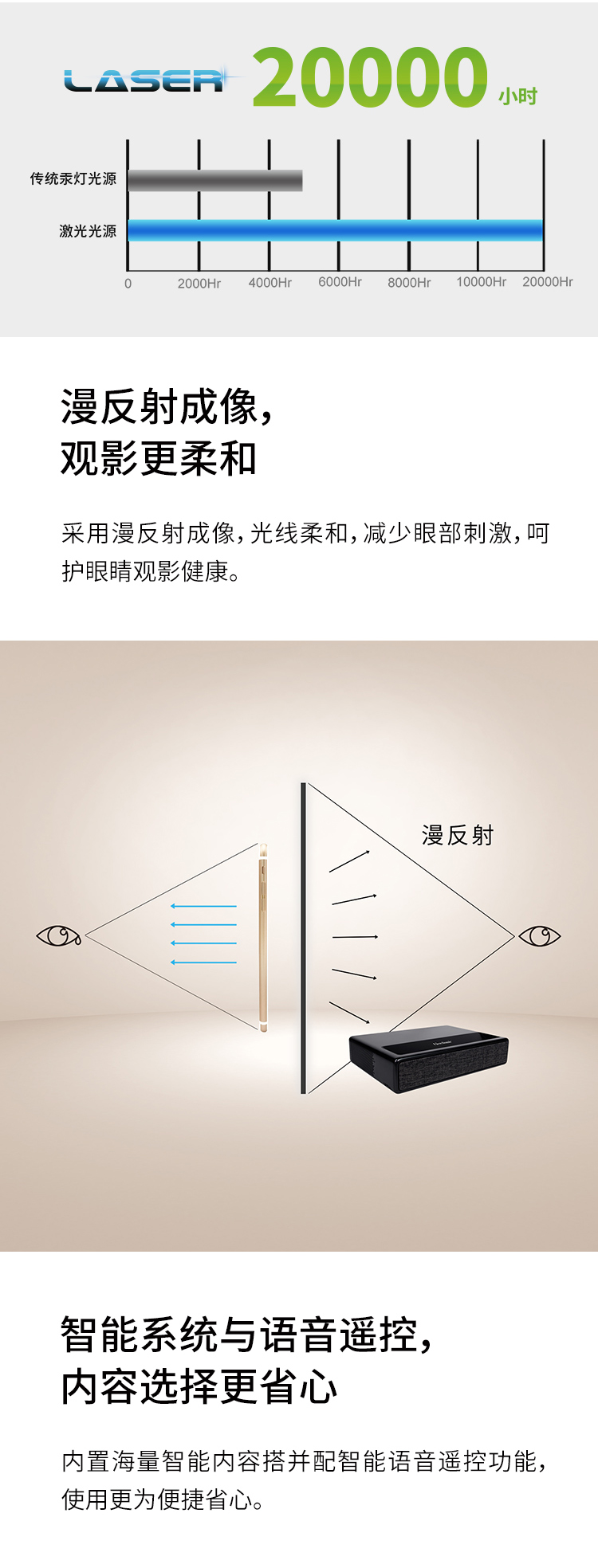 - 商品名称:优派 BHD8 投影仪 激光投影机家用(虹激光电视 HDR10 超短焦家庭智能影院 标配100英寸屏幕 ViewSonic)