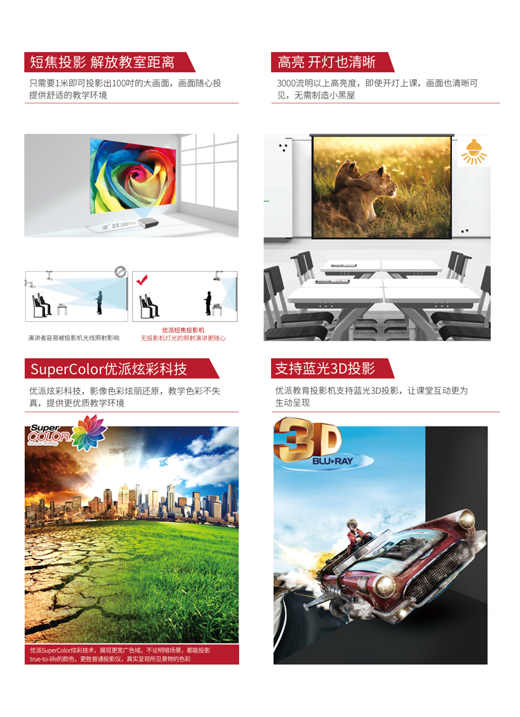 - 桌上正投;吊装正投;吊装背投;桌上背投