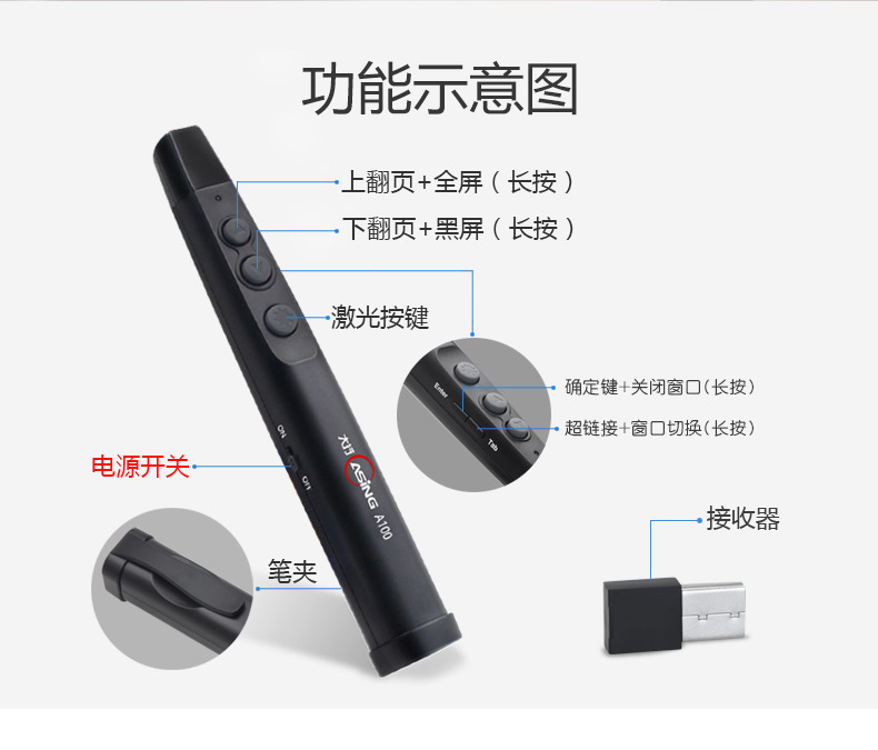 - 商品名称:大行(ASiNG)A100激光翻页笔 PPT遥控笔 激光投影笔 电子教鞭 红光 黑色