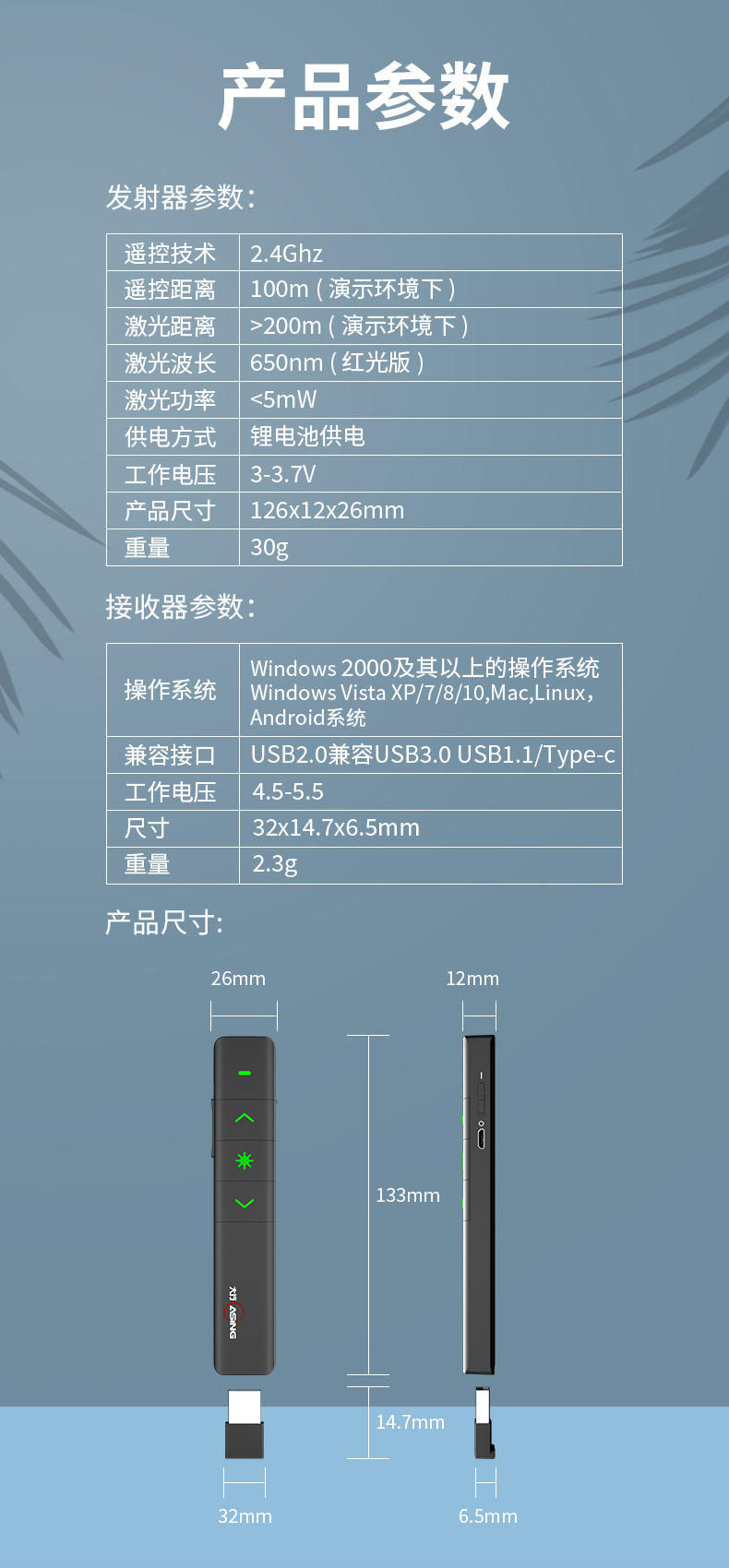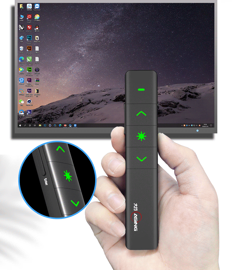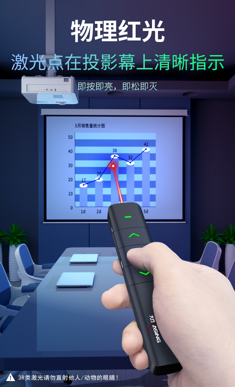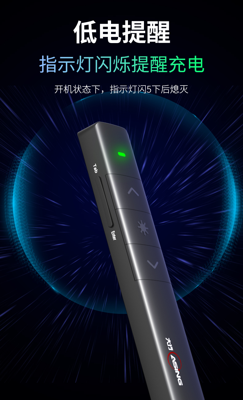 - 商品名称:大行(ASiNG)A61 360度遥控激光翻页笔 绿色透光 充电式投影笔 幻灯片遥控笔 PPT演示器Type-c USB双接口黑色