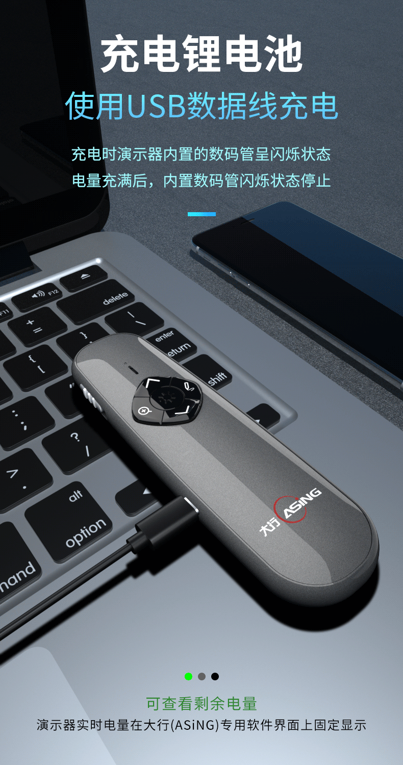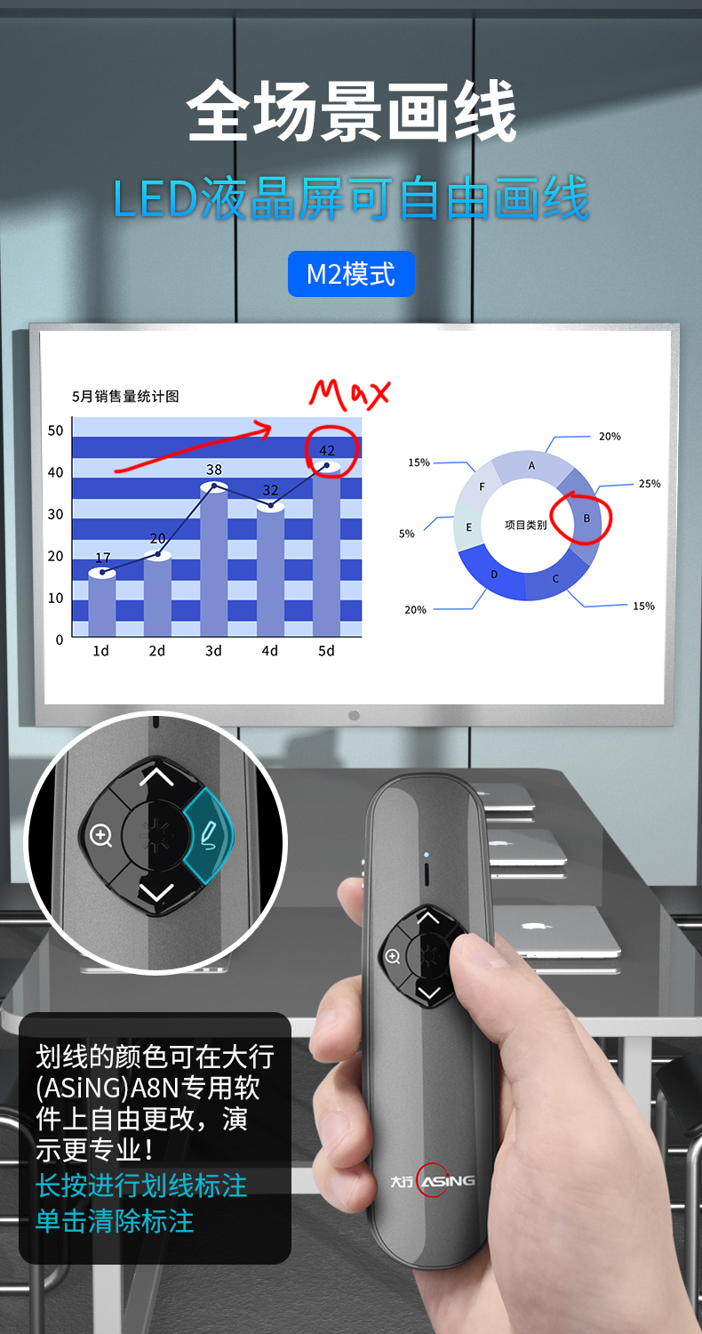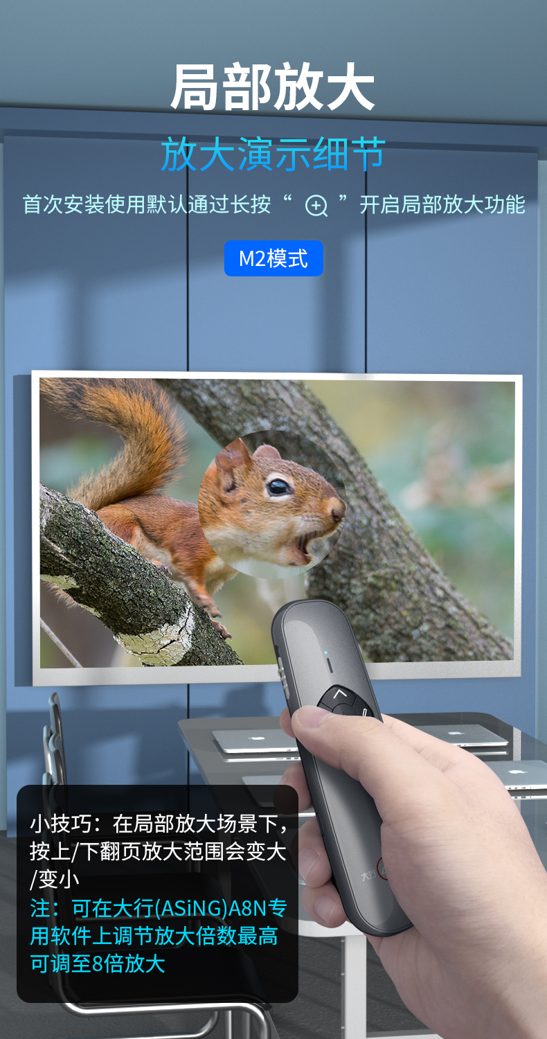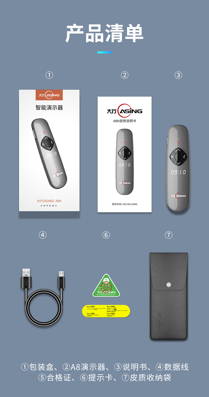 - 商品名称:大行(ASiNG) A8N Spotlight LED液晶屏激光笔 翻页笔 智能演示器 空鼠遥控笔 时间显示截屏分享 A8N 32G内存