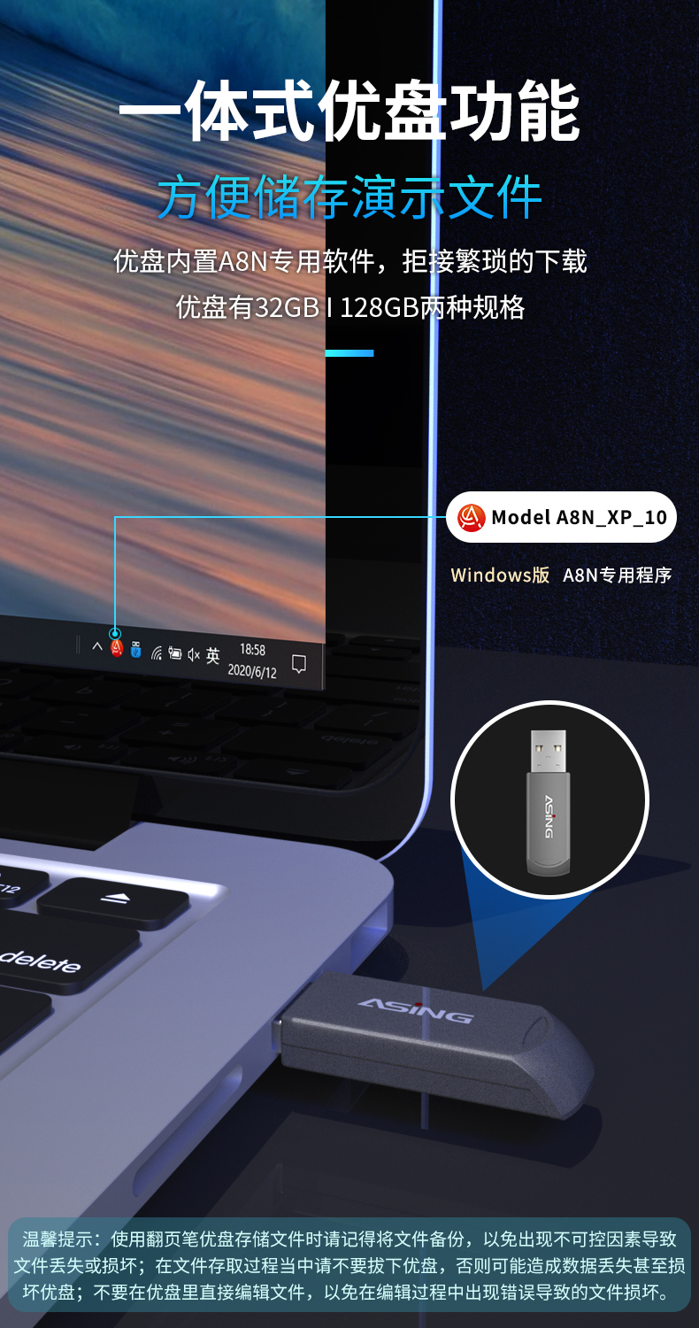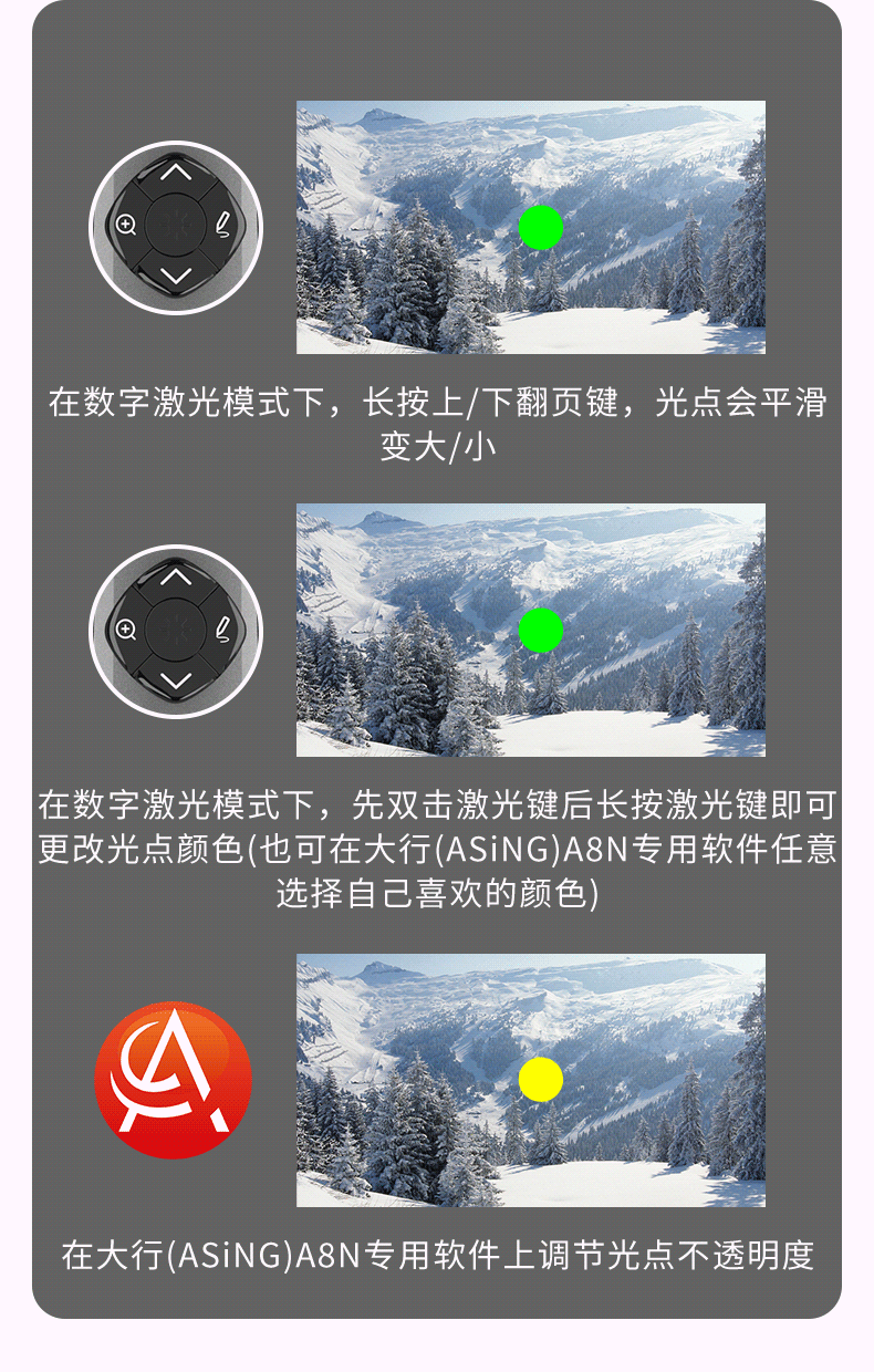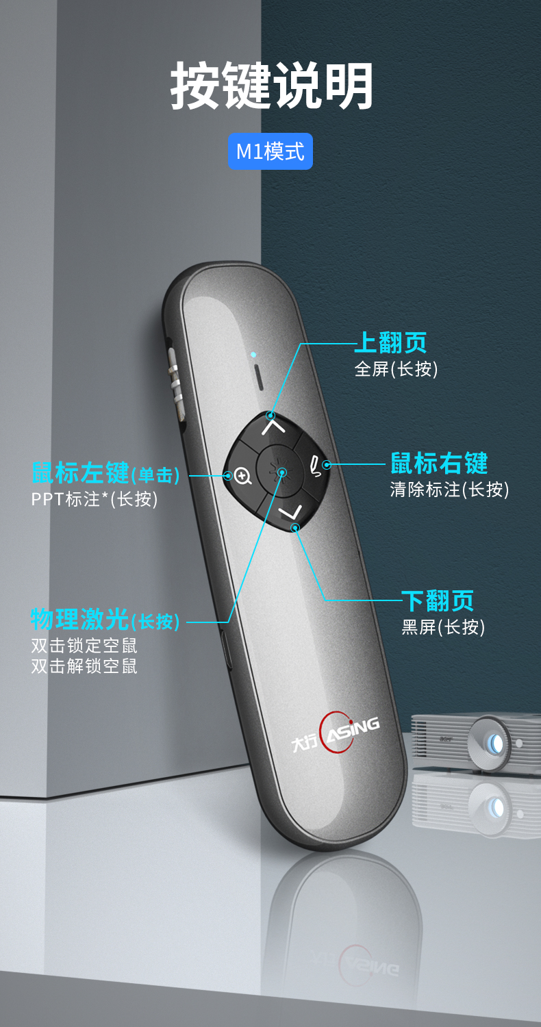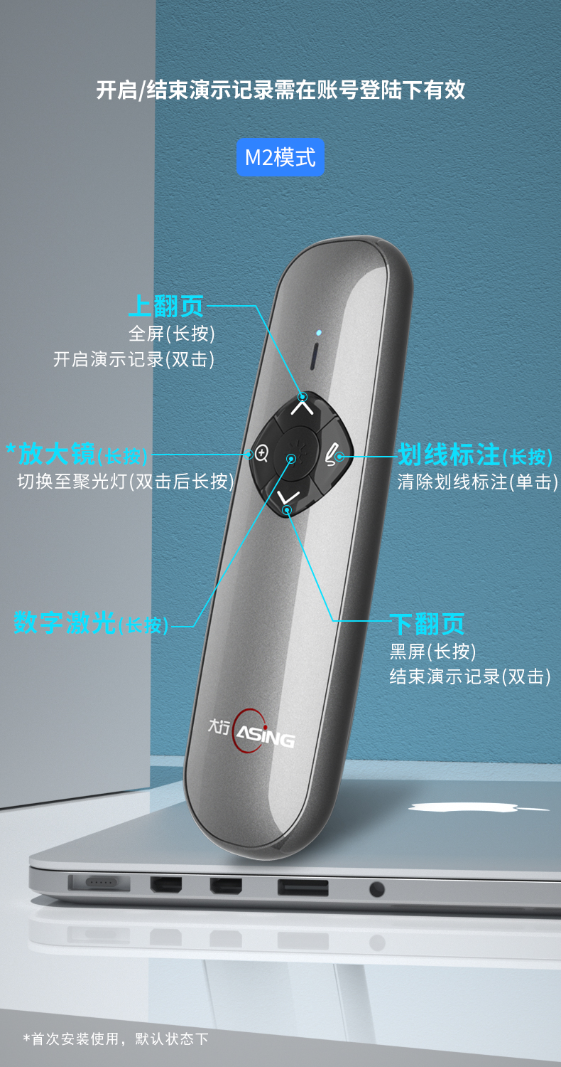 - 商品名称:大行(ASiNG) A8N Spotlight LED液晶屏激光笔 翻页笔 智能演示器 空鼠遥控笔 时间显示截屏分享 A8N 32G内存