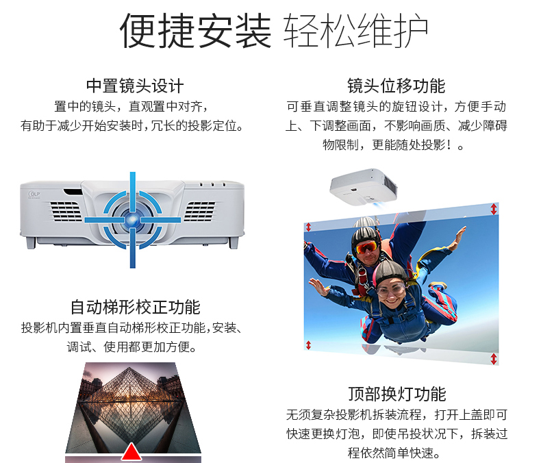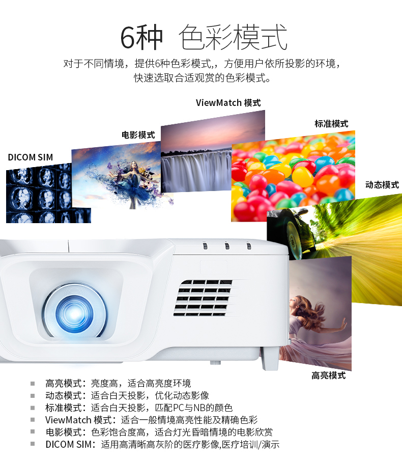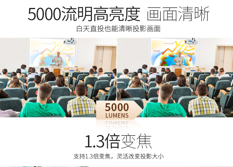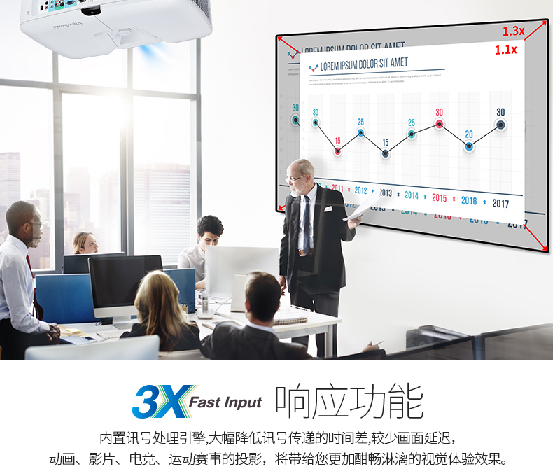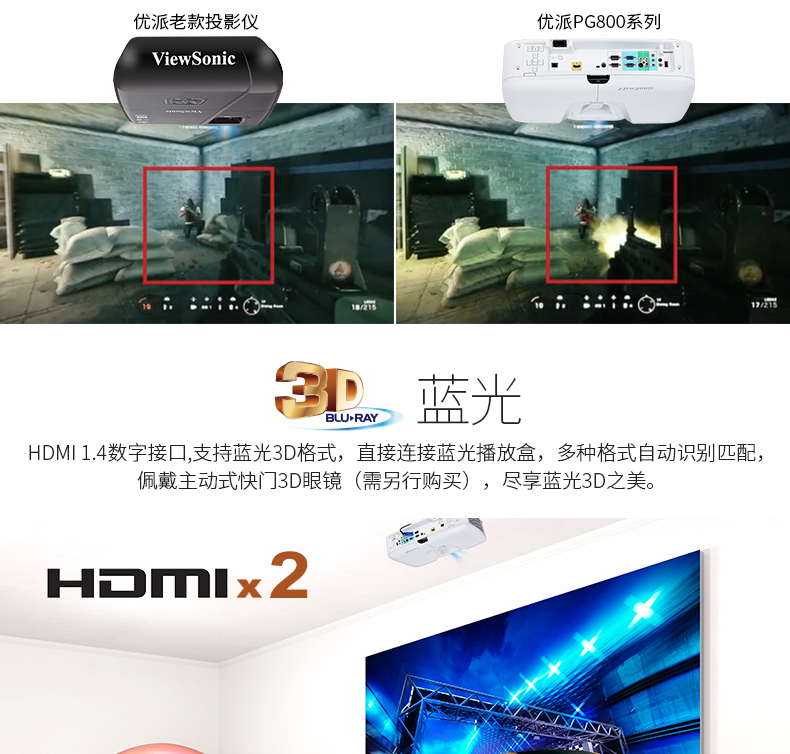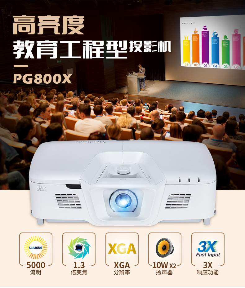 - 5000流明,1.3x光学变焦,ViewSonic超炫彩、超炫音技术,自动梯形矫正