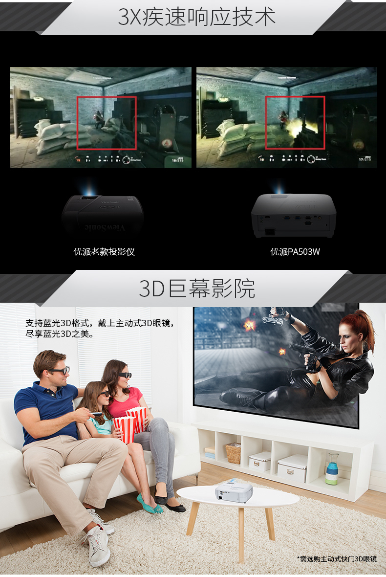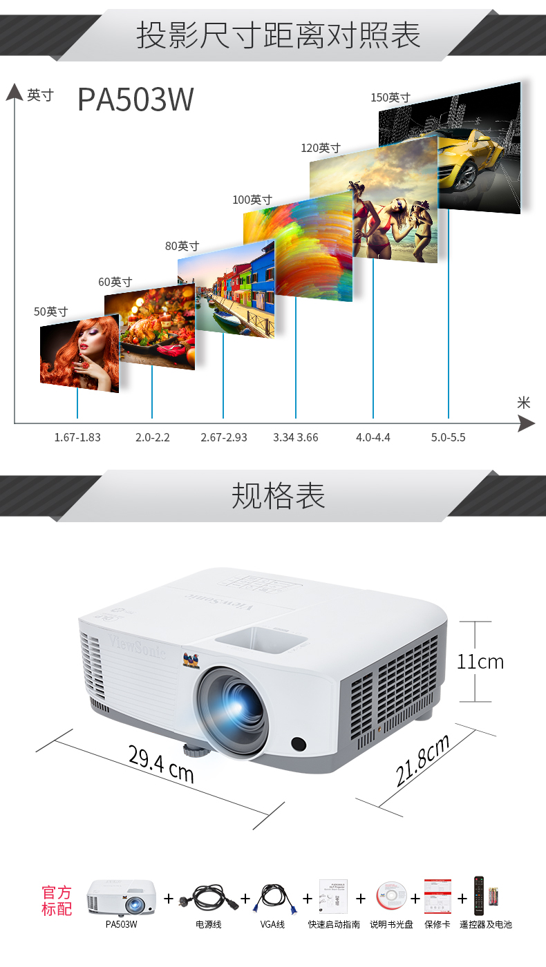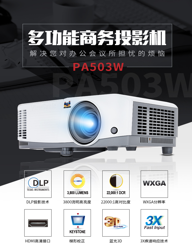 - 商品名称:优派 PA503W 投影仪 商务投影机 办公(高清宽屏3800流明 蓝光3D 梯形校正 ViewSonic)