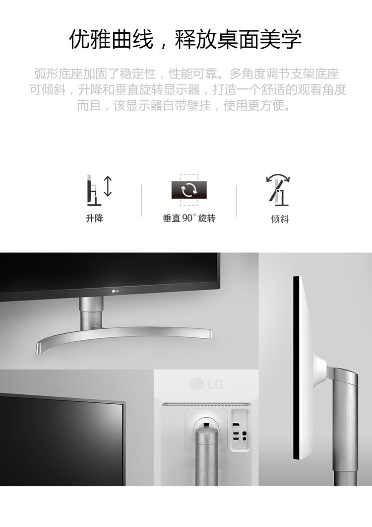 - 商品名称:LG 27英寸 UHD 4K 超高清 HDR 适用PS5 IPS屏 旋转升降底座 色彩校准 阅读模式 游戏显示器 27UL550 -W