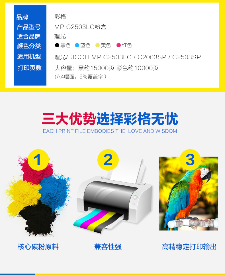 - 商品名称:彩格适用理光MPC2503粉盒 MPC2003SP碳粉 2504墨盒 2011SP墨粉 C2004复印机碳粉黑色大容量