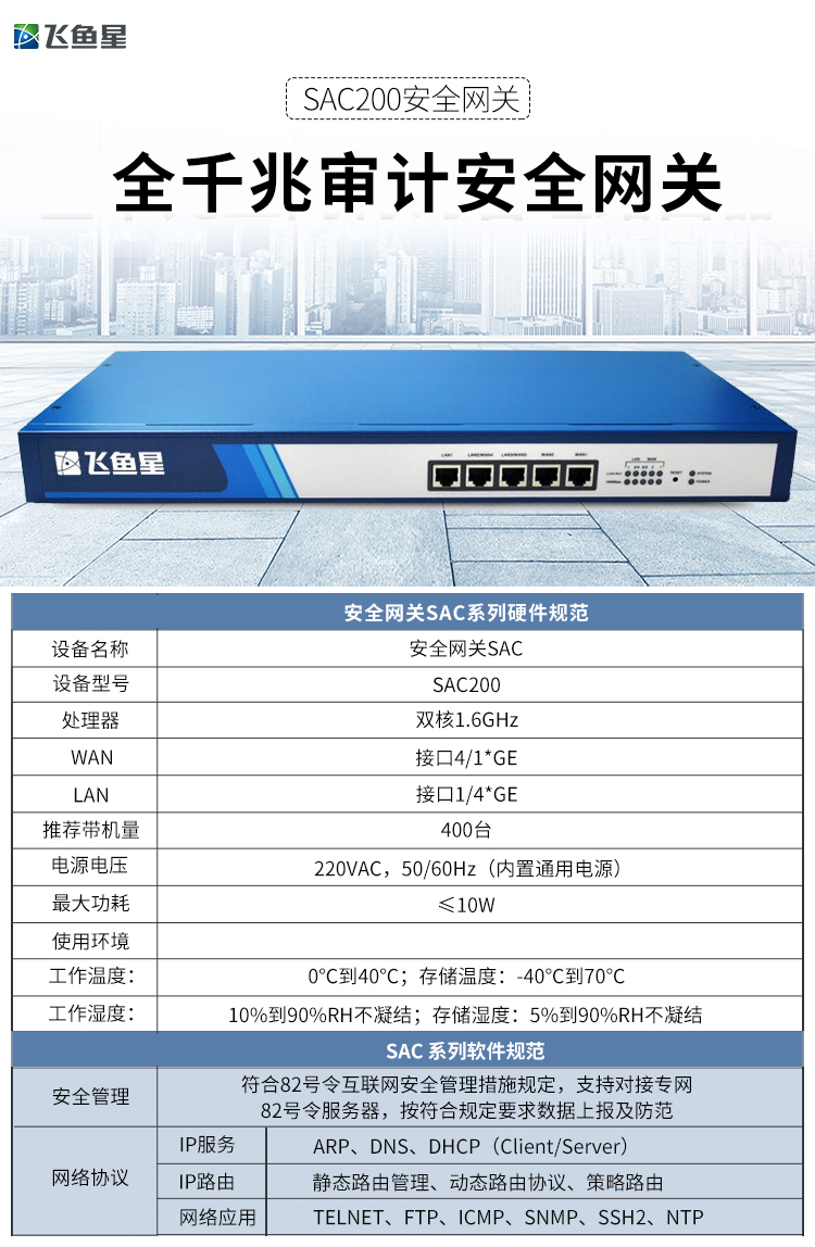 商品名称:飞鱼星 SAC200 千兆企业路由器 行为管理/VPN路由