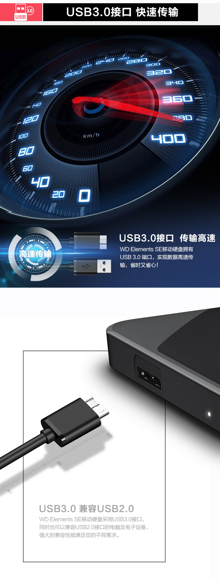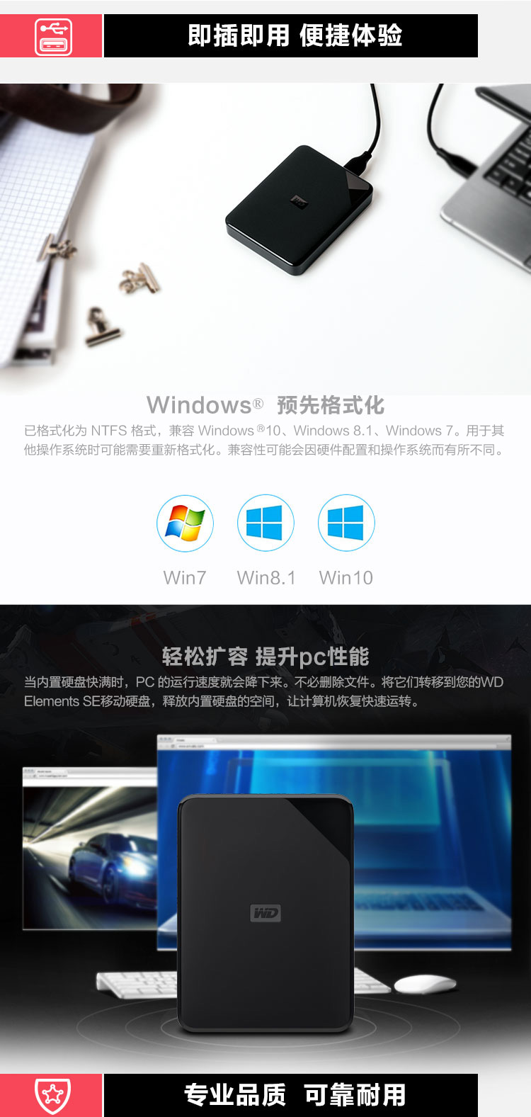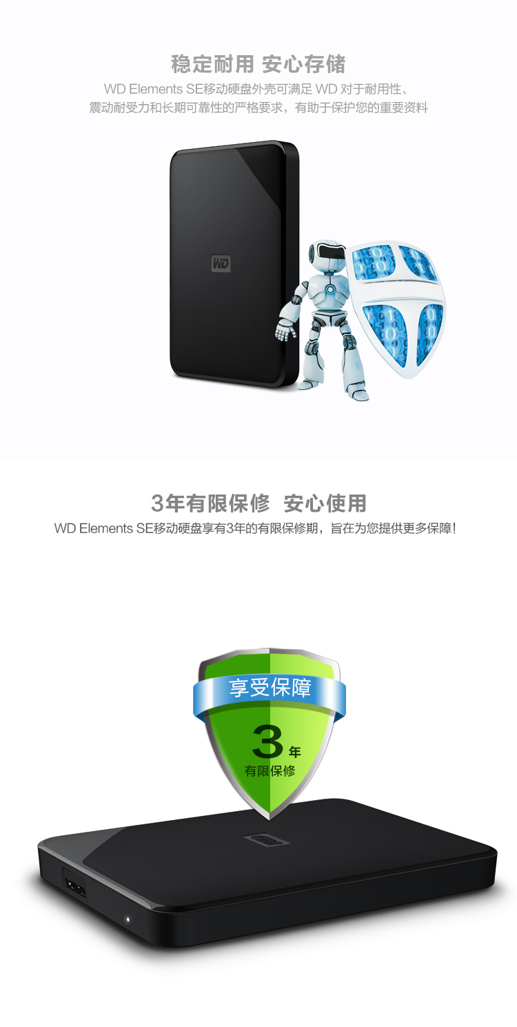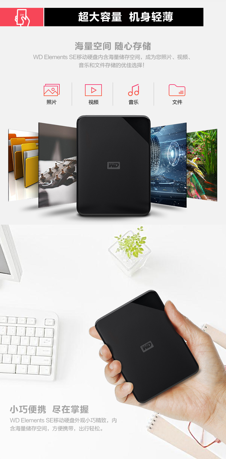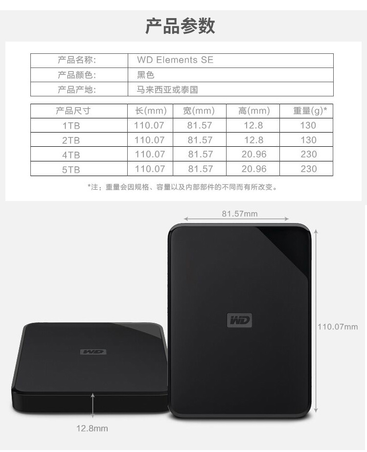 - 商品名称:西部数据(WD)2TB USB3.0移动硬盘Elements SE 新元素系列2.5英寸(稳定耐用 海量存储)WDBEPK0020BBK