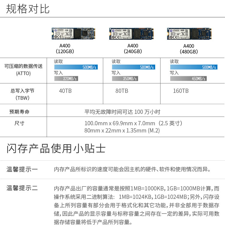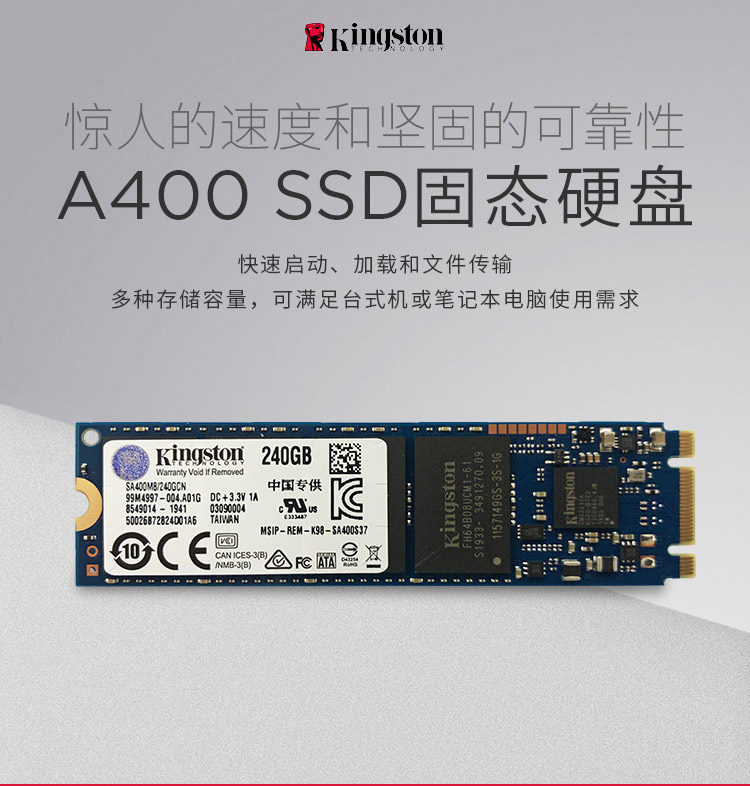 - 商品名称:金士顿(Kingston) 240GB SSD固态硬盘 M.2接口(SATA总线) A400系列