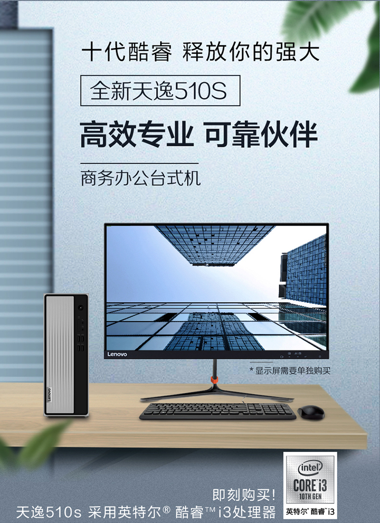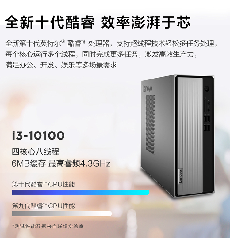 商品名称:联想(Lenovo)天逸510S 十代英特尔酷睿i3 台式机电脑整机(i3-101008G 1T wifi win10 三年上门)21.5英寸