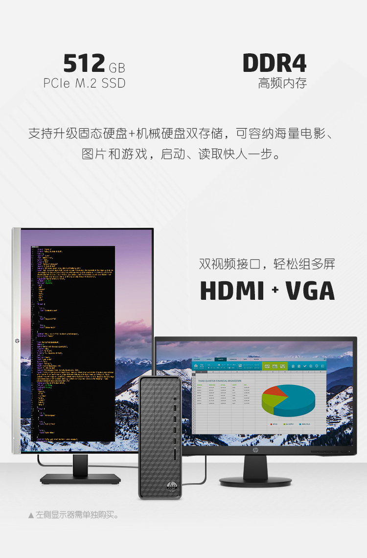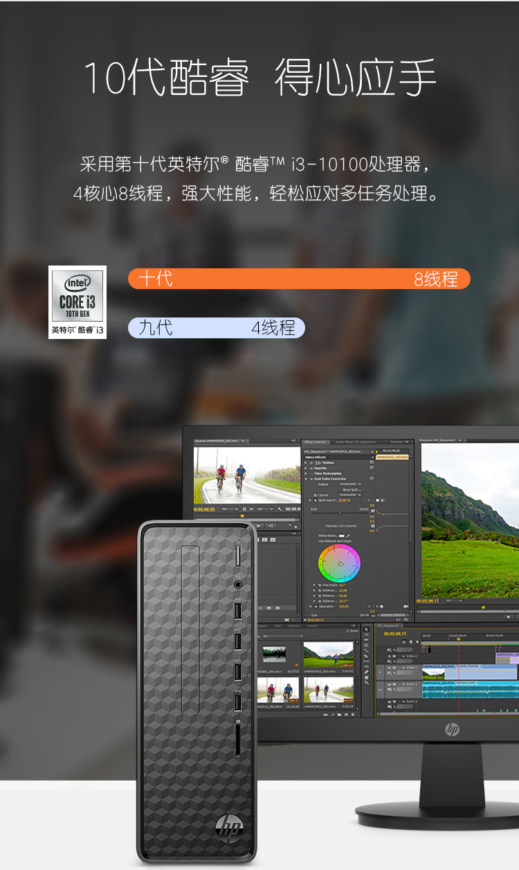 商品名称:惠普(HP)小欧S01 商务办公台式电脑整机(十代i3-10100 8G 512GSSD Win10 注册五年上门)21.5英寸