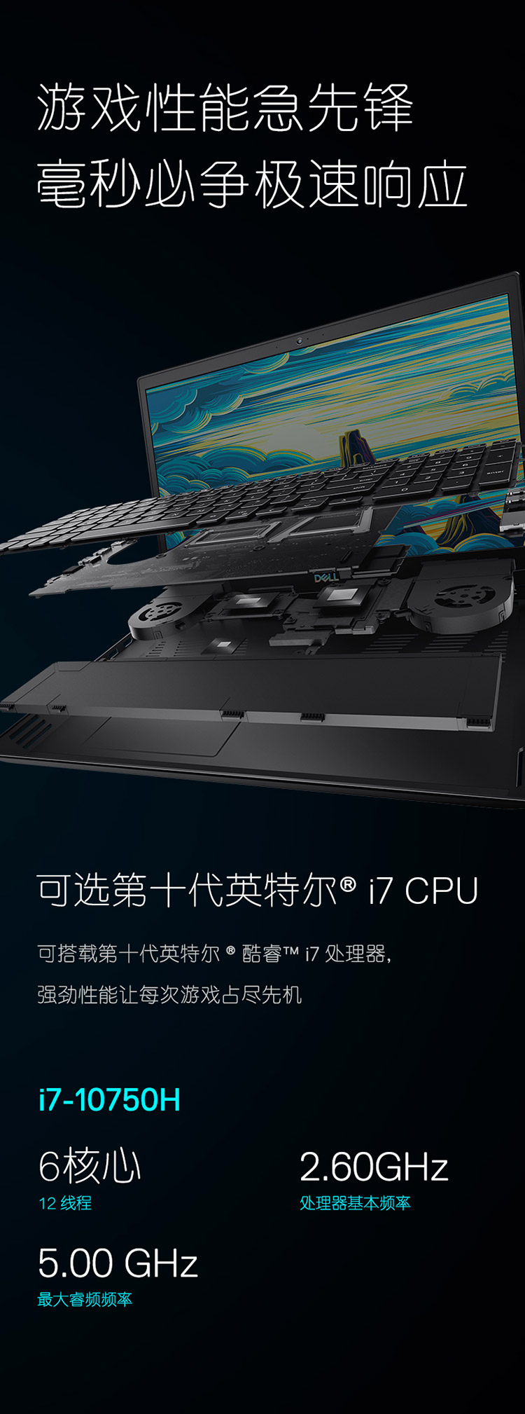 - 商品名称:戴尔(DELL)G5 英特尔酷睿i7电竞游戏本笔记本电脑(十代标压i7 16G内存 512G固态硬盘 RTX 2060 6G 144Hz)
