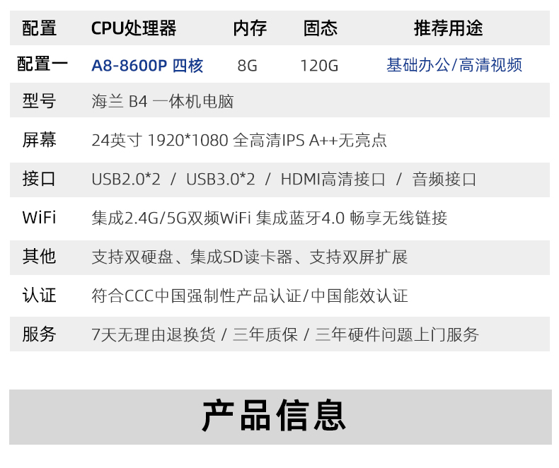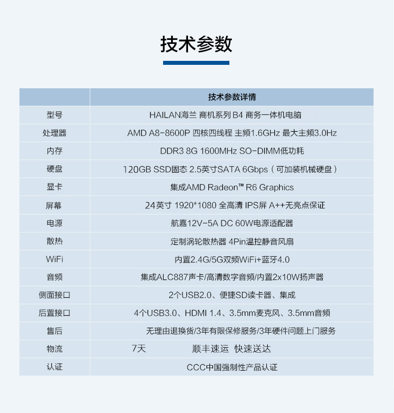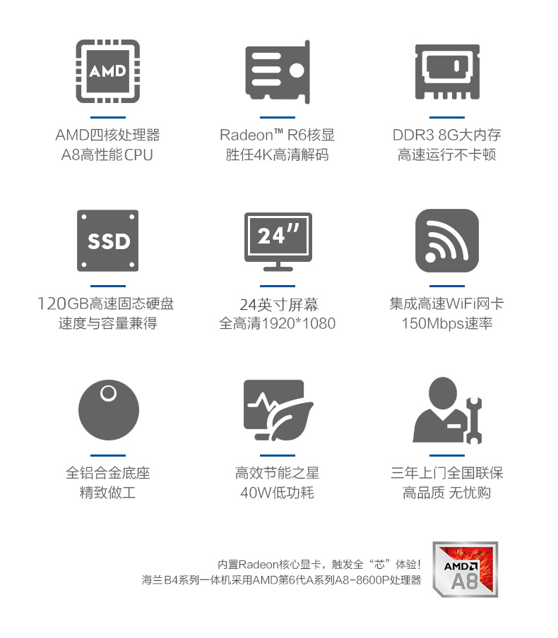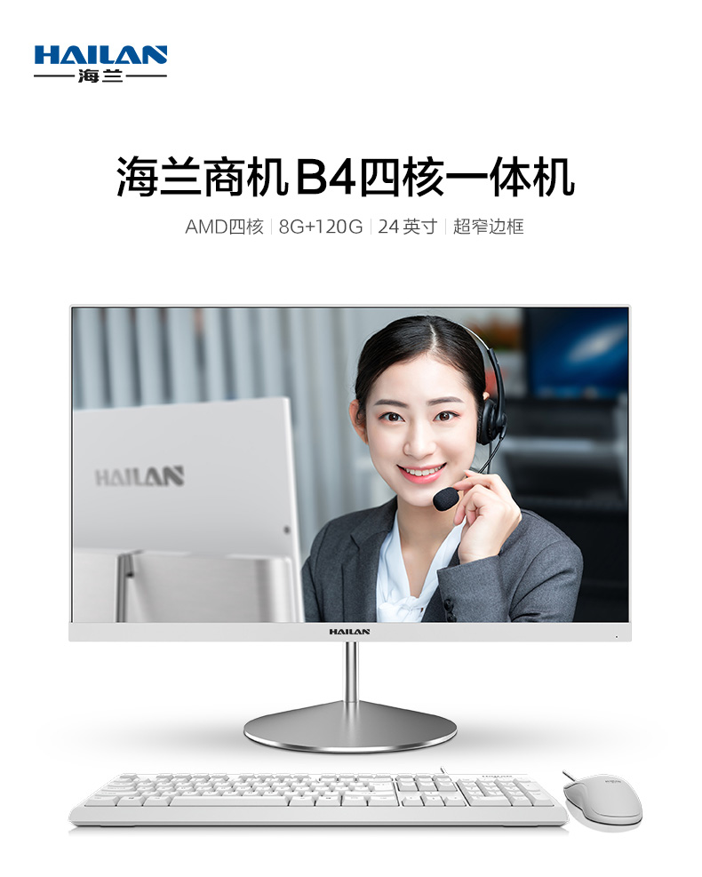 - 商品名称:海兰 B4-A8商机 24英寸一体机电脑A8-8600P+8G+256G四核