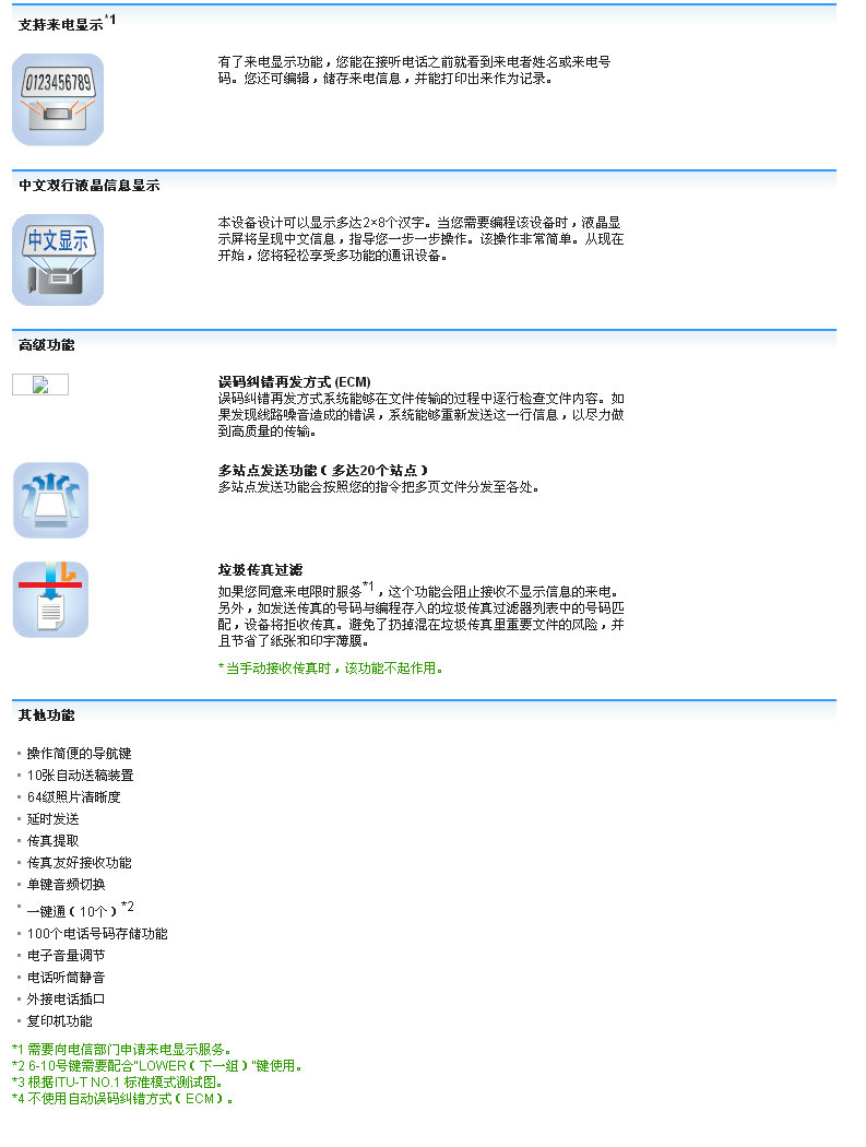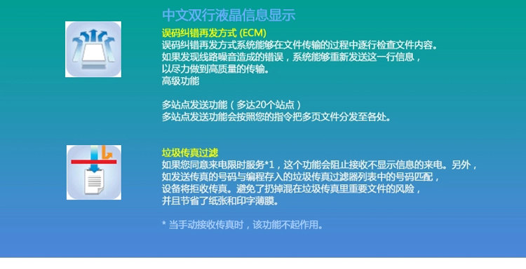 - 传真机适用纸张:热敏纸
