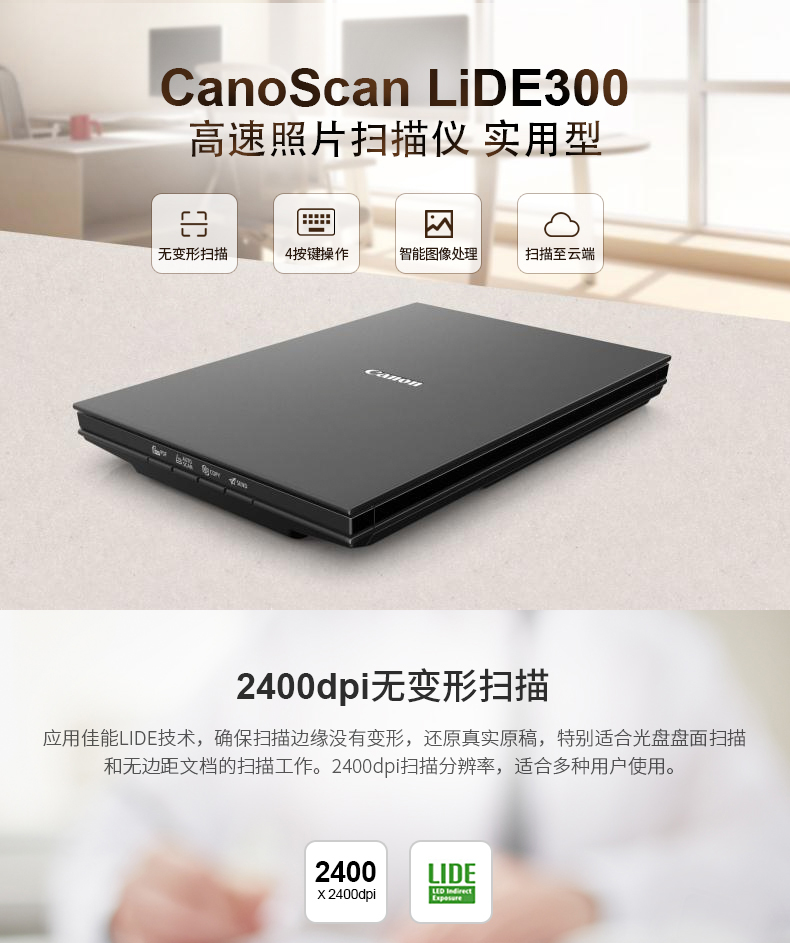 - 商品名称:佳能(Canon)CanoScan LIDE300 实用型高速照片扫描仪