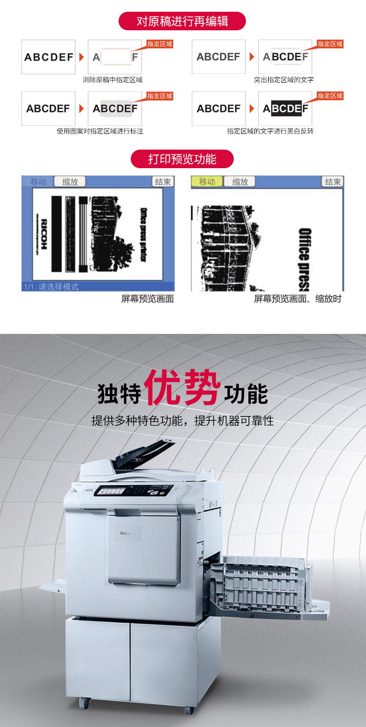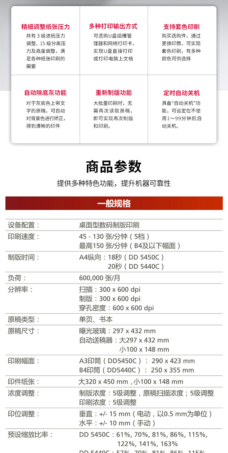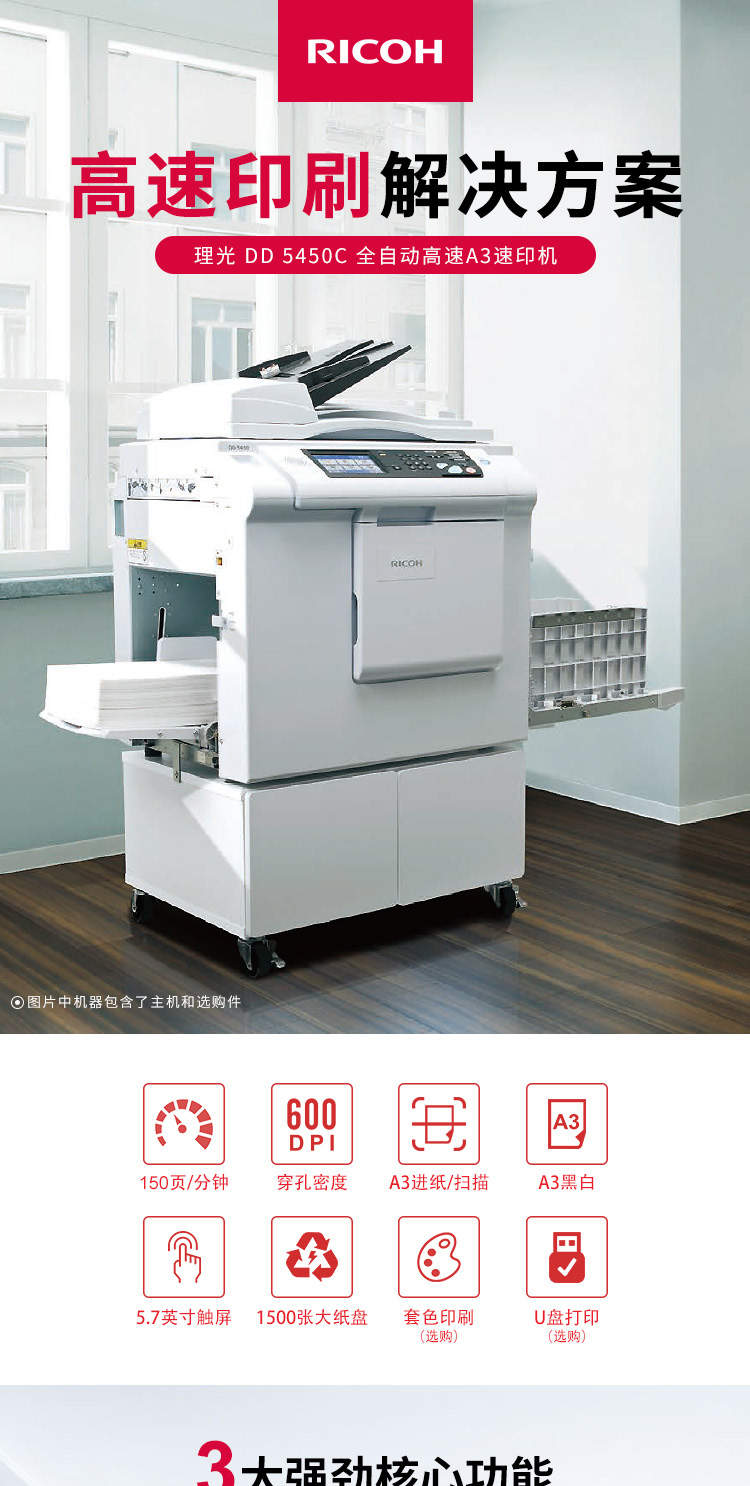 商品名称:理光(Ricoh)DD5450C A3数码印刷机 速印机(主机+盖板)