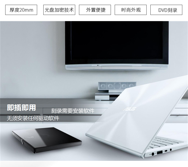 华硕(ASUS) SDRW-08D6S-U 外置光驱刻录机 便携USB移动DVD/CD刻录机 便携USB移动DVD/CD刻录机