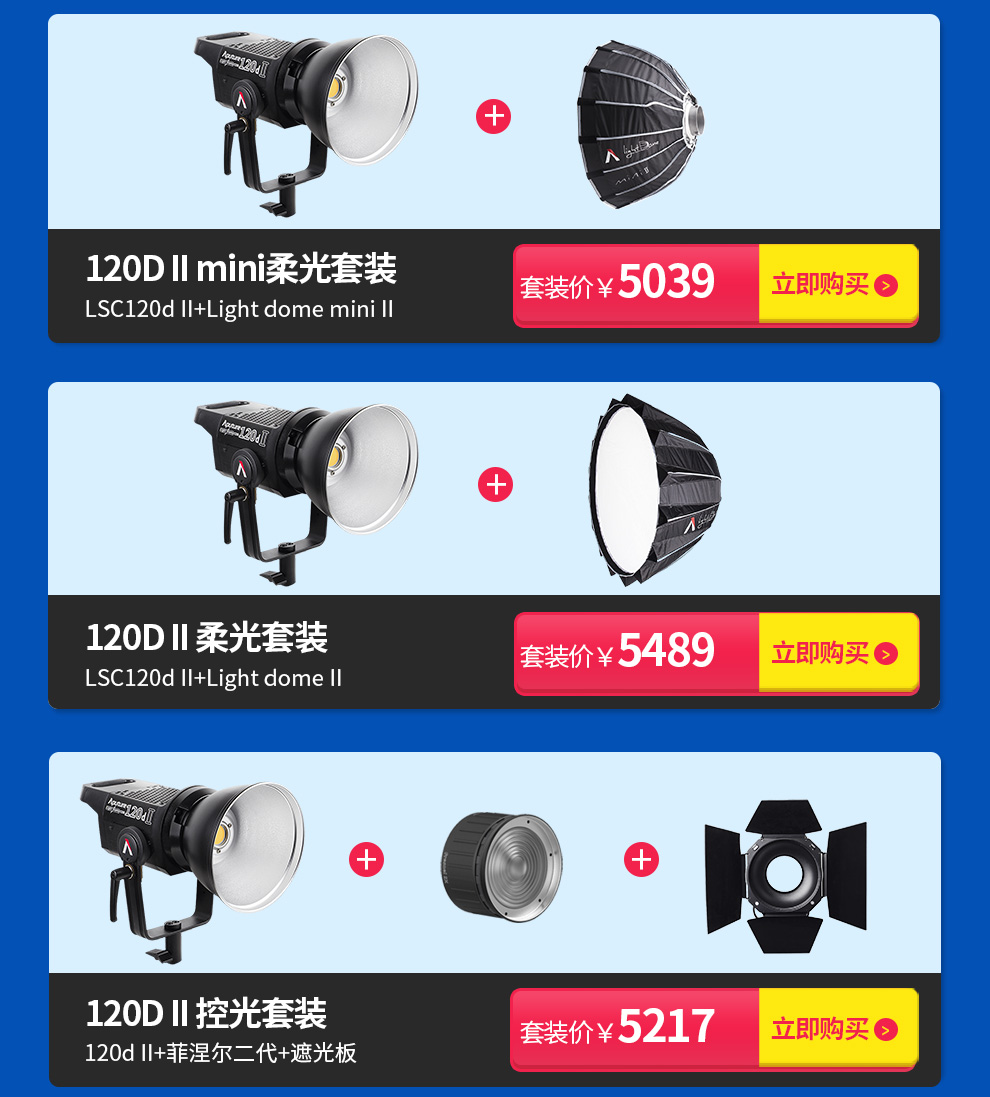 - 商品名称:爱图仕Aputure LS C120d II 摄影补光灯 拍摄影视灯 直播外拍灯 摄像人像商拍影室灯 120D II 柔光套装