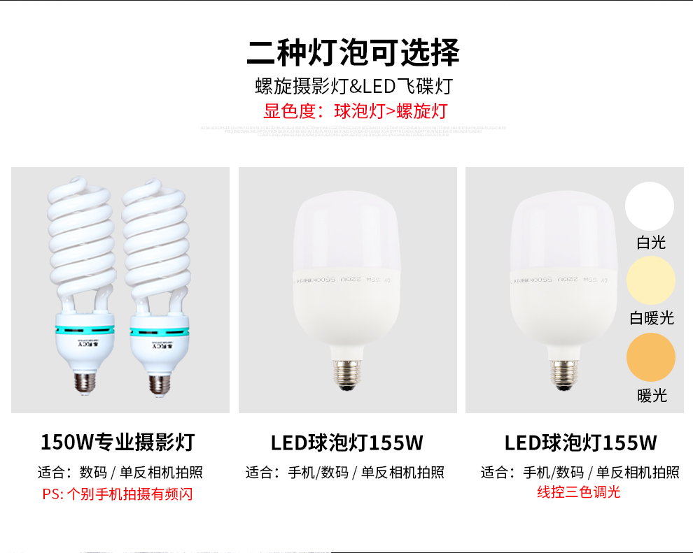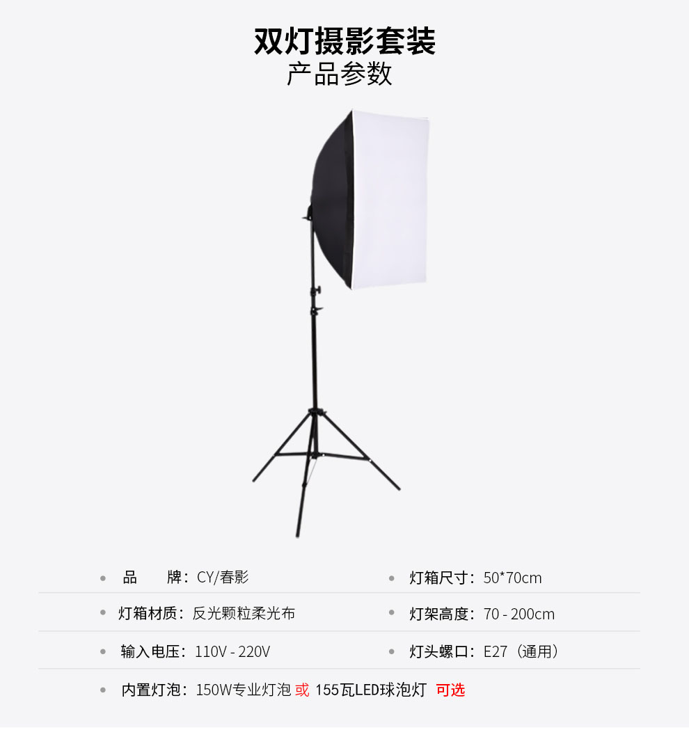 - 商品名称:春影(cy)led摄影灯补光灯 打光柔光灯箱 摄影棚套装 网红直播 拍照灯箱常亮 螺旋灯 2只