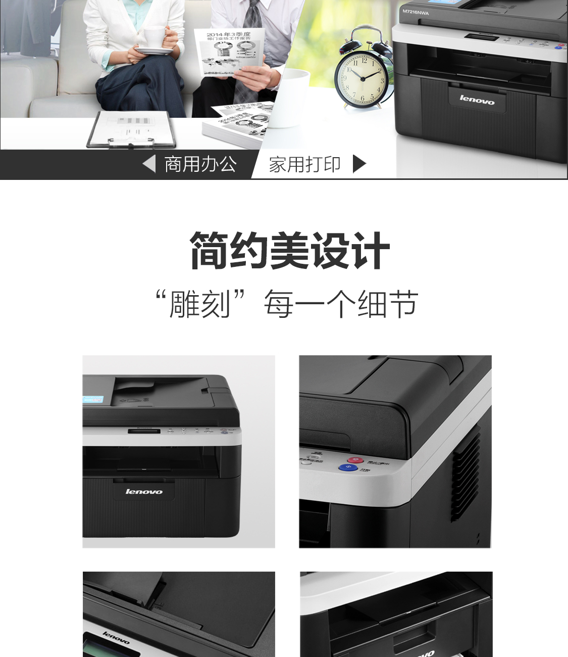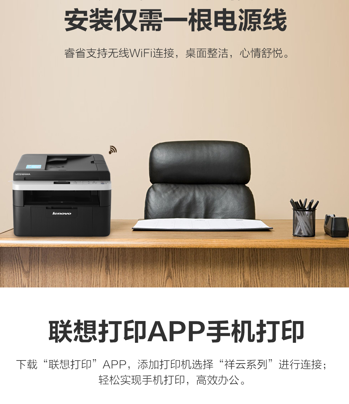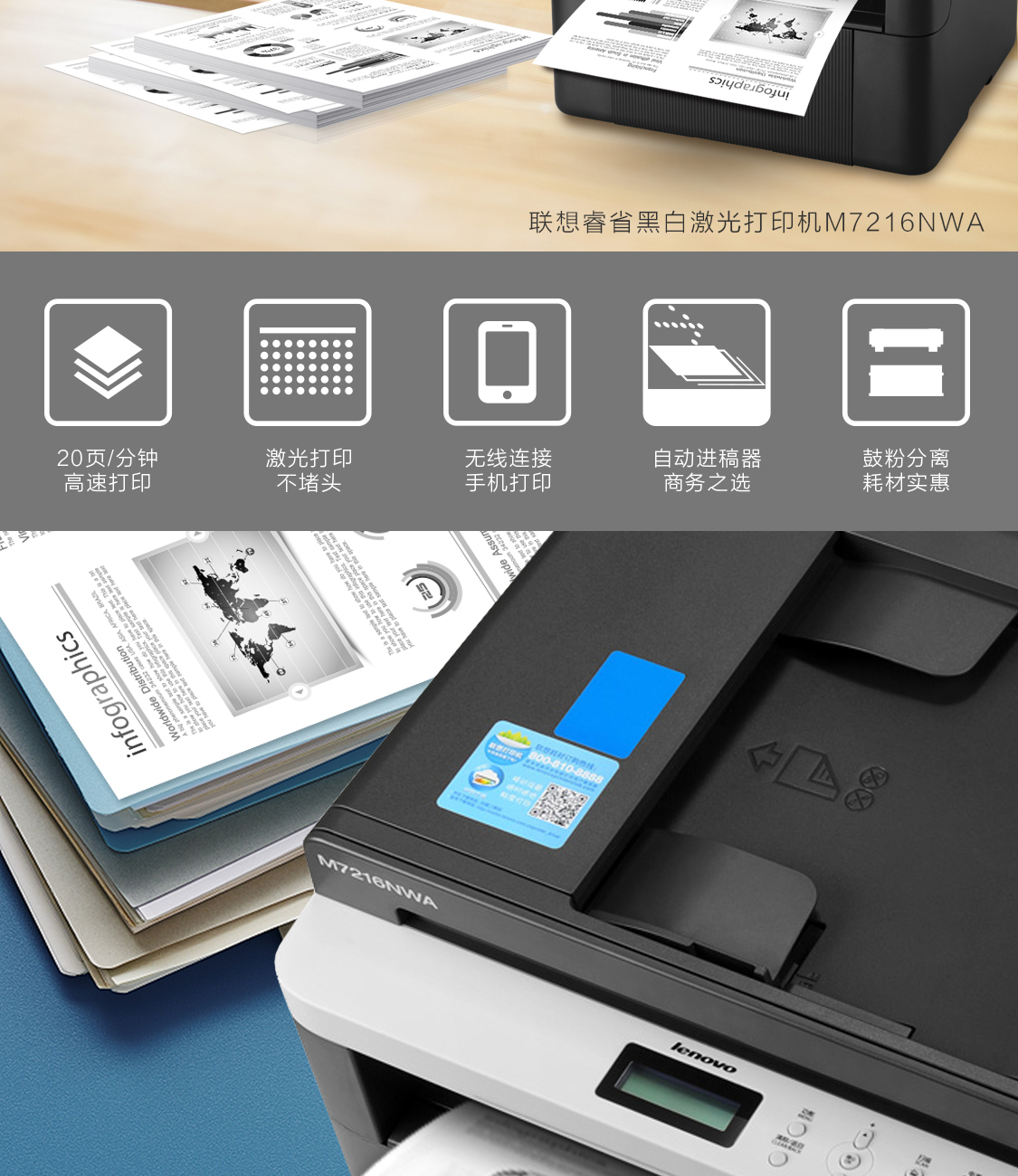 - 商品名称:联想(Lenovo)M7216NWA 黑白激光有线网络+无线WiFi打印多功能一体机 商用家用办公 (打印 复印 扫描)