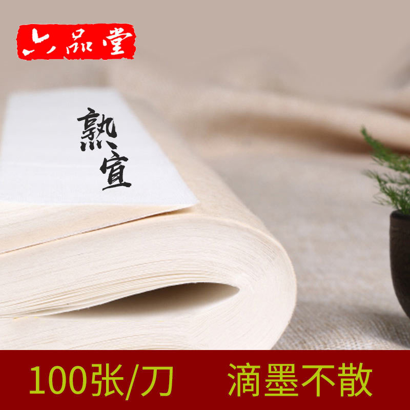 - 商品名称:六品堂 熟宣纸 绘画作品展示集 初学者书法 练习绘画宣纸熟宣纸 工笔画抄经小楷毛笔书法纸 国画纸张 四尺四开 100张【34*68cm】 宣纸