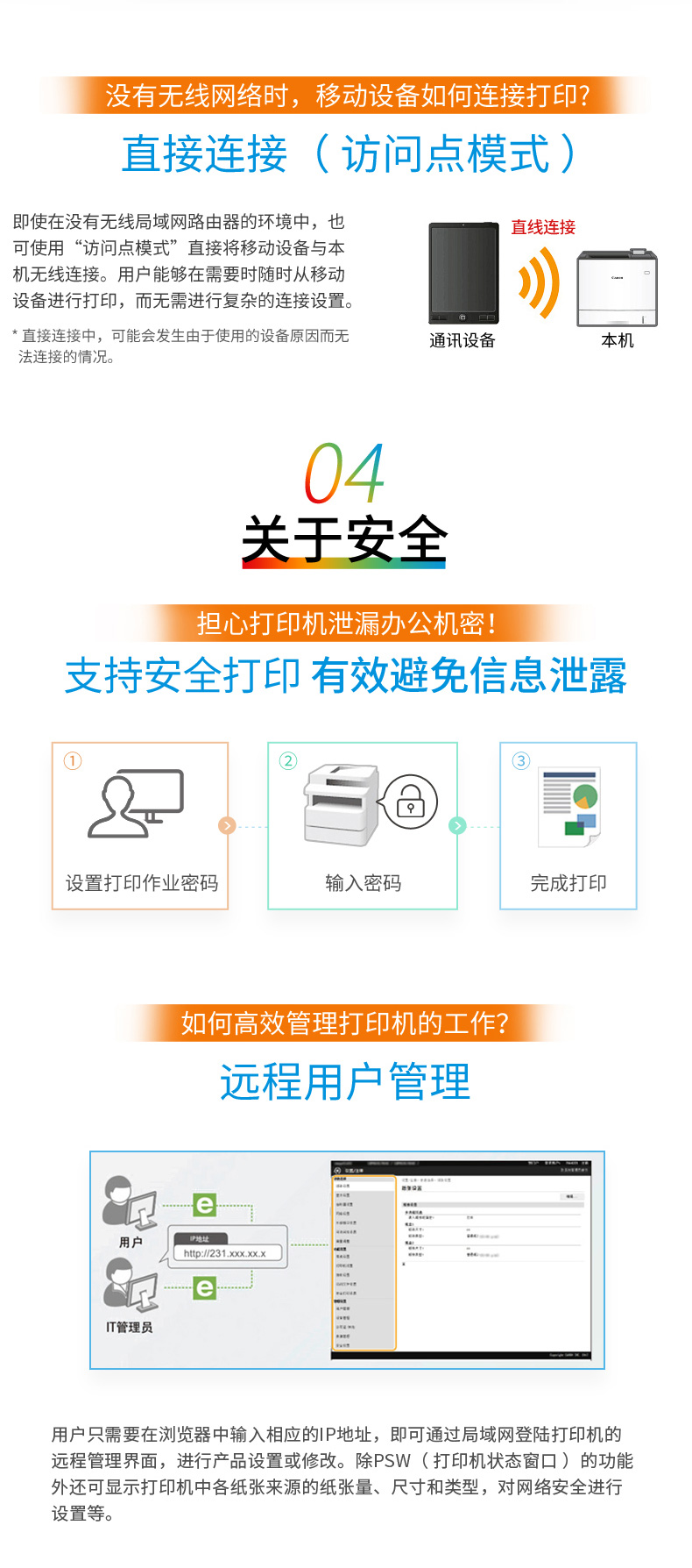 有线;无线;USB;移动APP打印