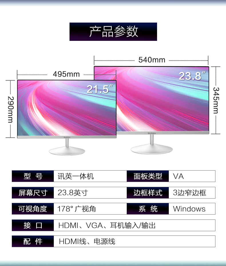 商品名称:讯英 Bulldex GS2495 23.8英寸桌面一体机高清商务办公电脑【i5-9400/8G/240G】