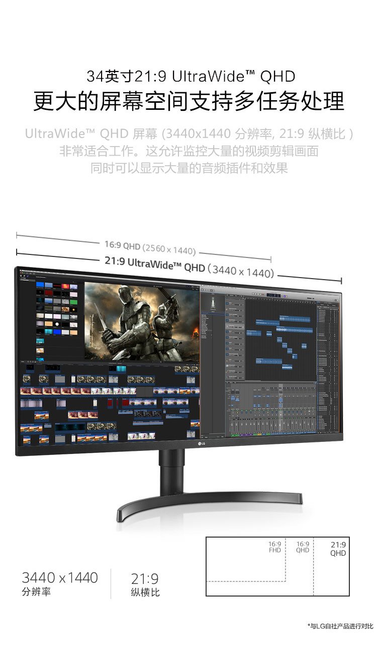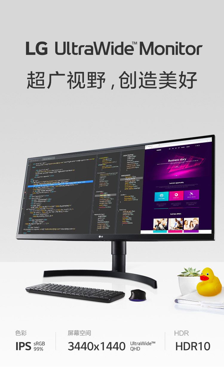 - 商品名称:LG 34WN750-B 34英寸 2K 超宽带鱼屏 HDR IPS屏 FreeSync 阅读模式 低闪屏 升降底座 微边 显示器