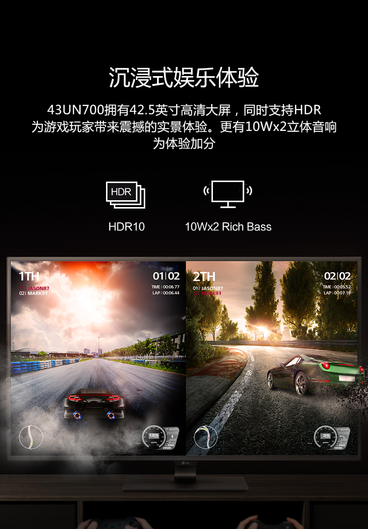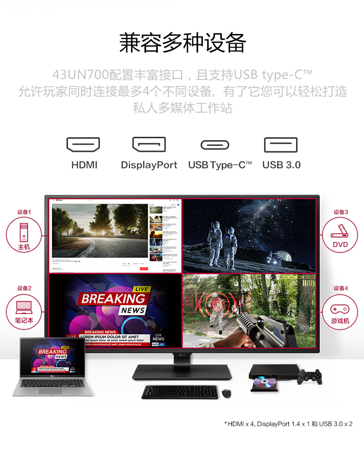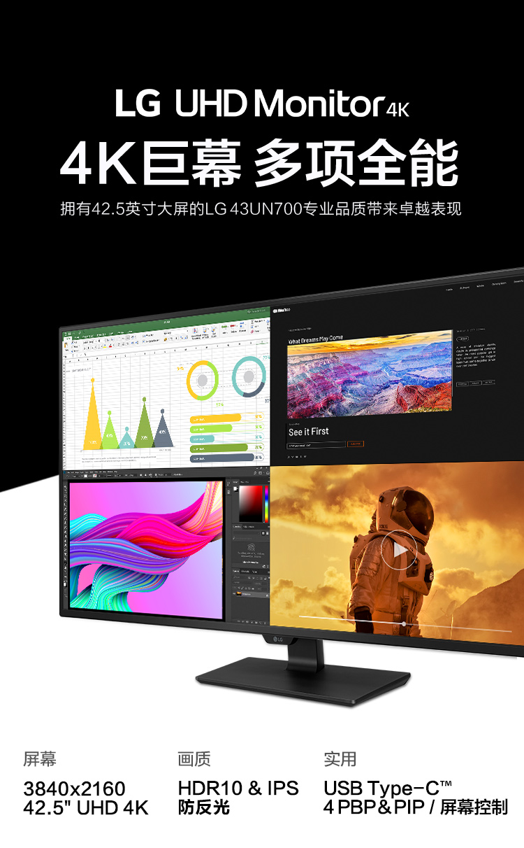 - 商品名称:LG 43UN700-B 42.5英寸 4K超高清 4个HDMI 快充Type-C PBP HDR 防反光显示器 远程遥控 10W音箱 IPS硬屏