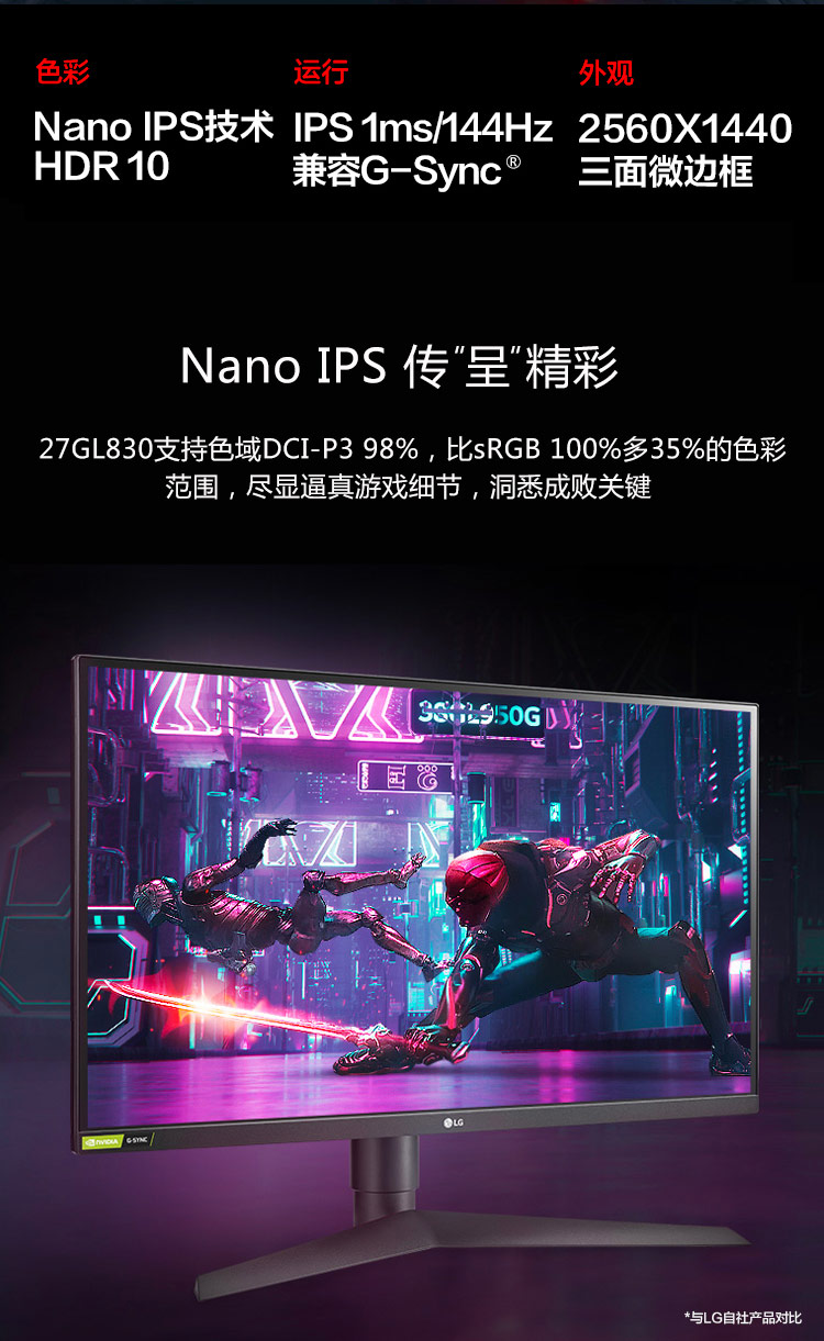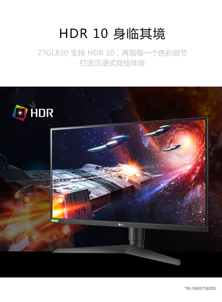 - 商品名称:LG 27GL830-B 27英寸 NanoIPS屏 1ms(GTG) 2K高分 G-Sync兼容 144Hz HDR 旋转升降 游戏 电竞 显示器