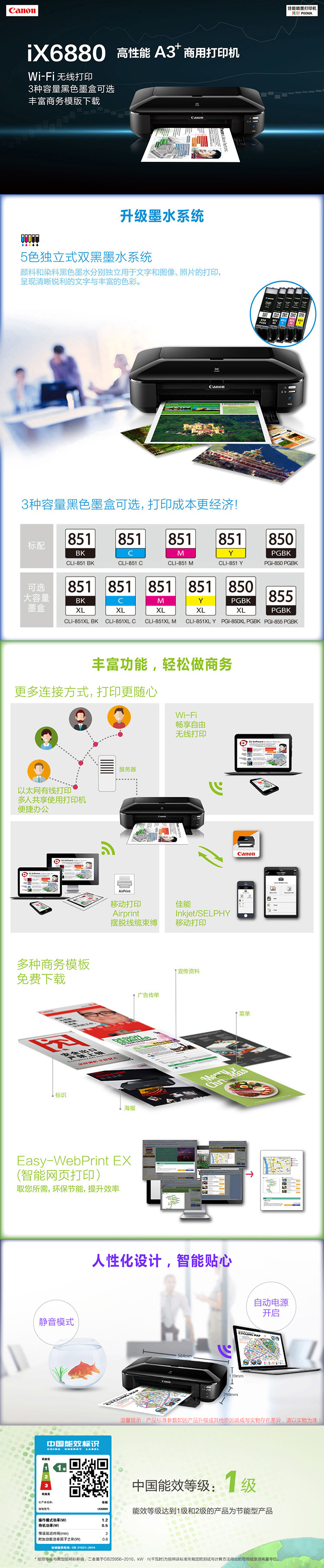 - 商品名称:佳能(Canon) iX6880 高性能A3+实用喷墨双网络无线打印机