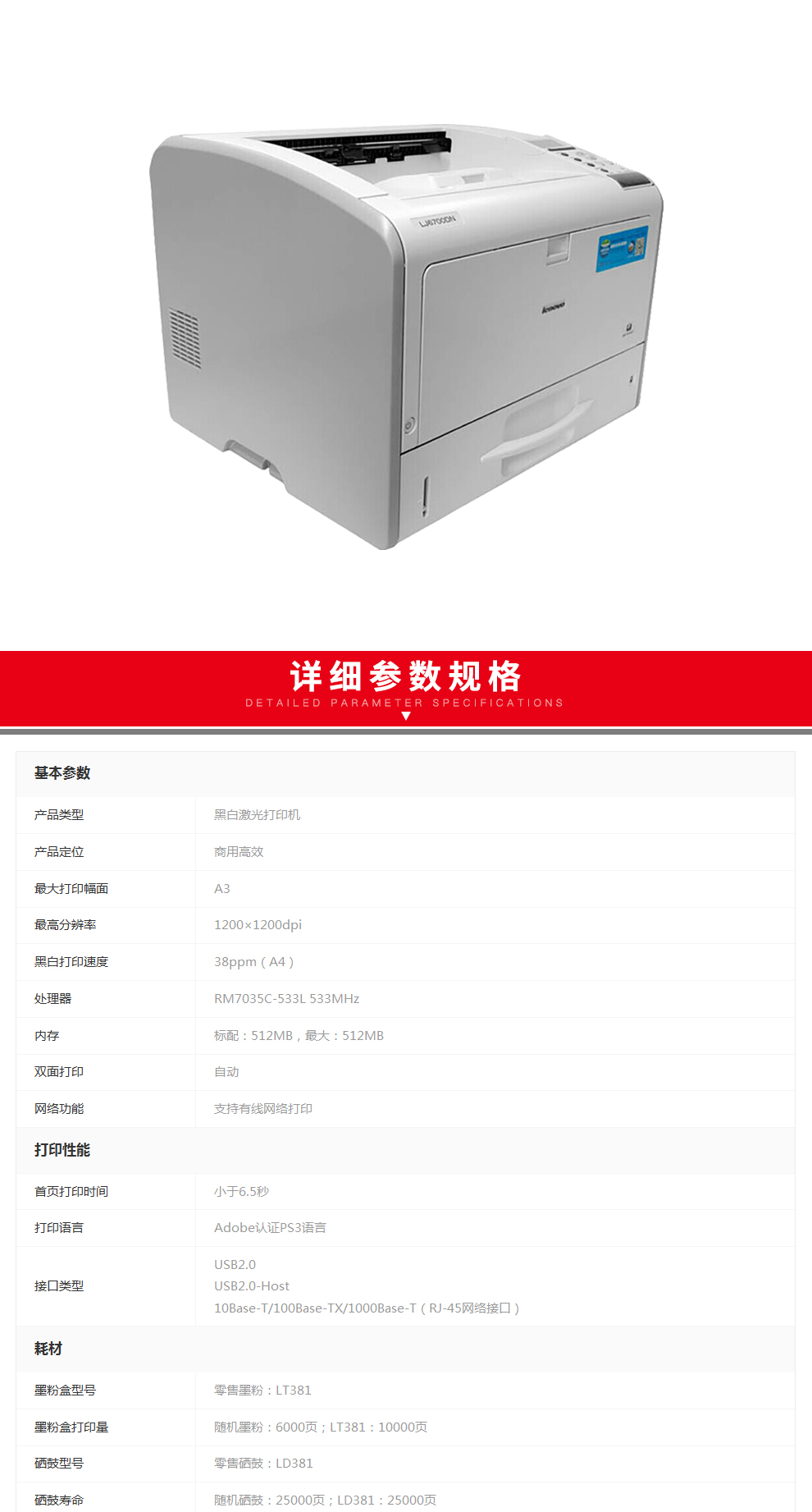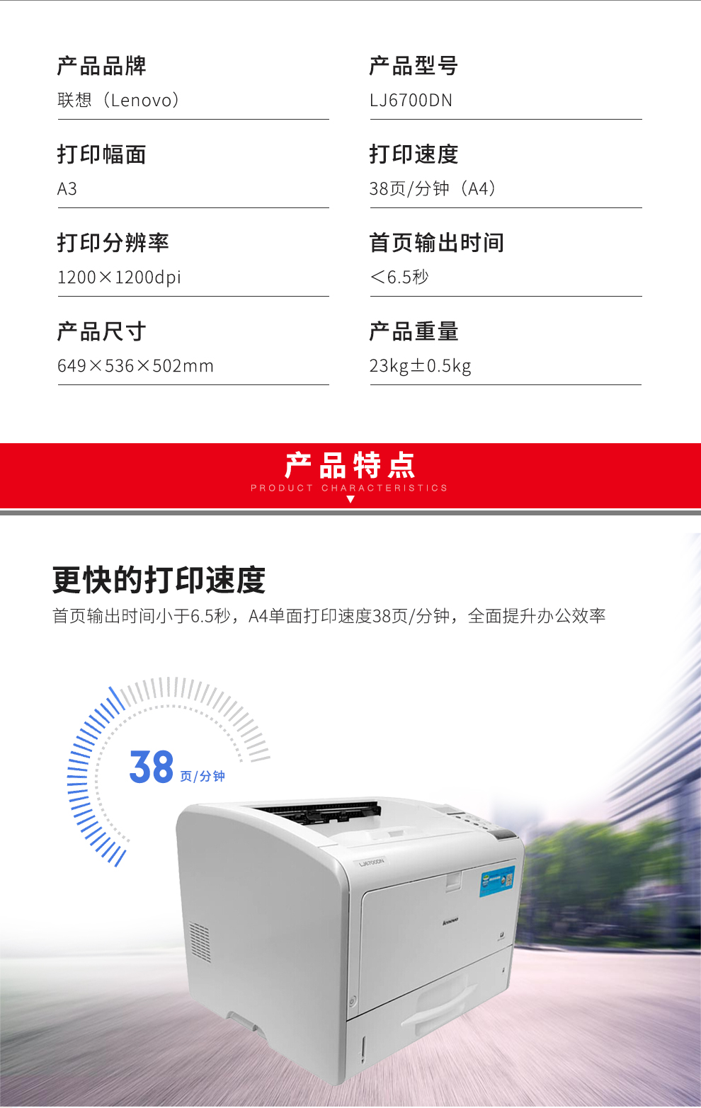 - 商品名称:联想(Lenovo)LJ6700DN A3黑白激光打印机 高速打印 自动双面打印/有线网络打印