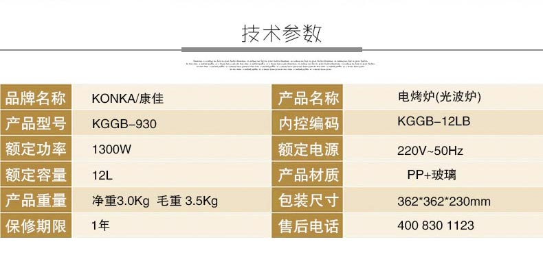 - 商品名称:康佳(KONKA)光波炉美味金刚KGGB-12LB